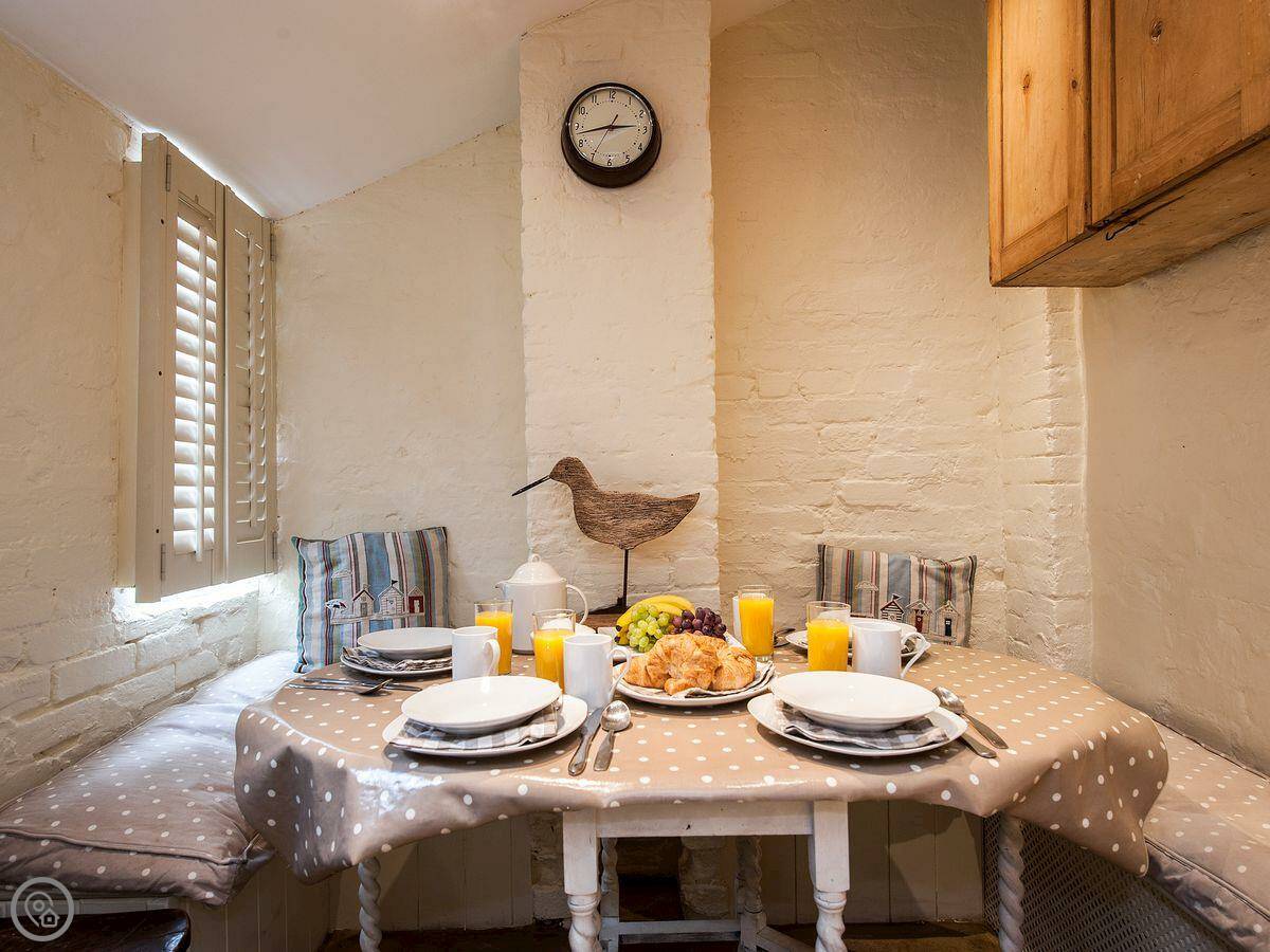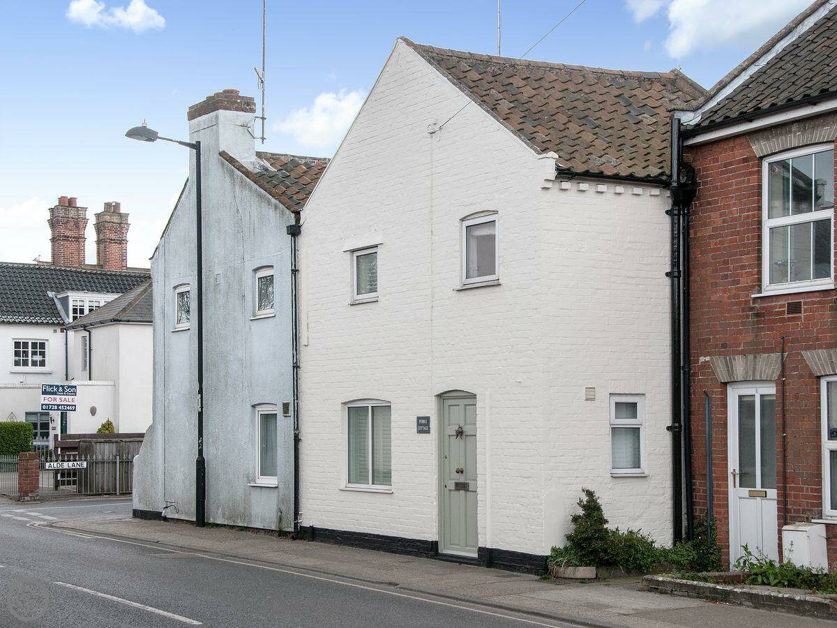 Pebble Cottage is on a side street just off Aldeburgh High Street. It's a terraced fisherman's cottage, old and narrow. The stairs to the first floor are very steep, just so you know.