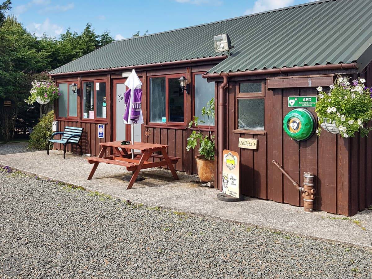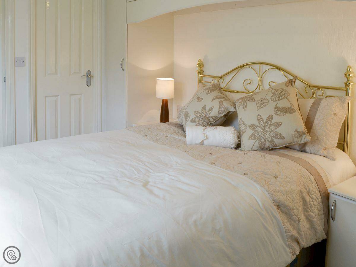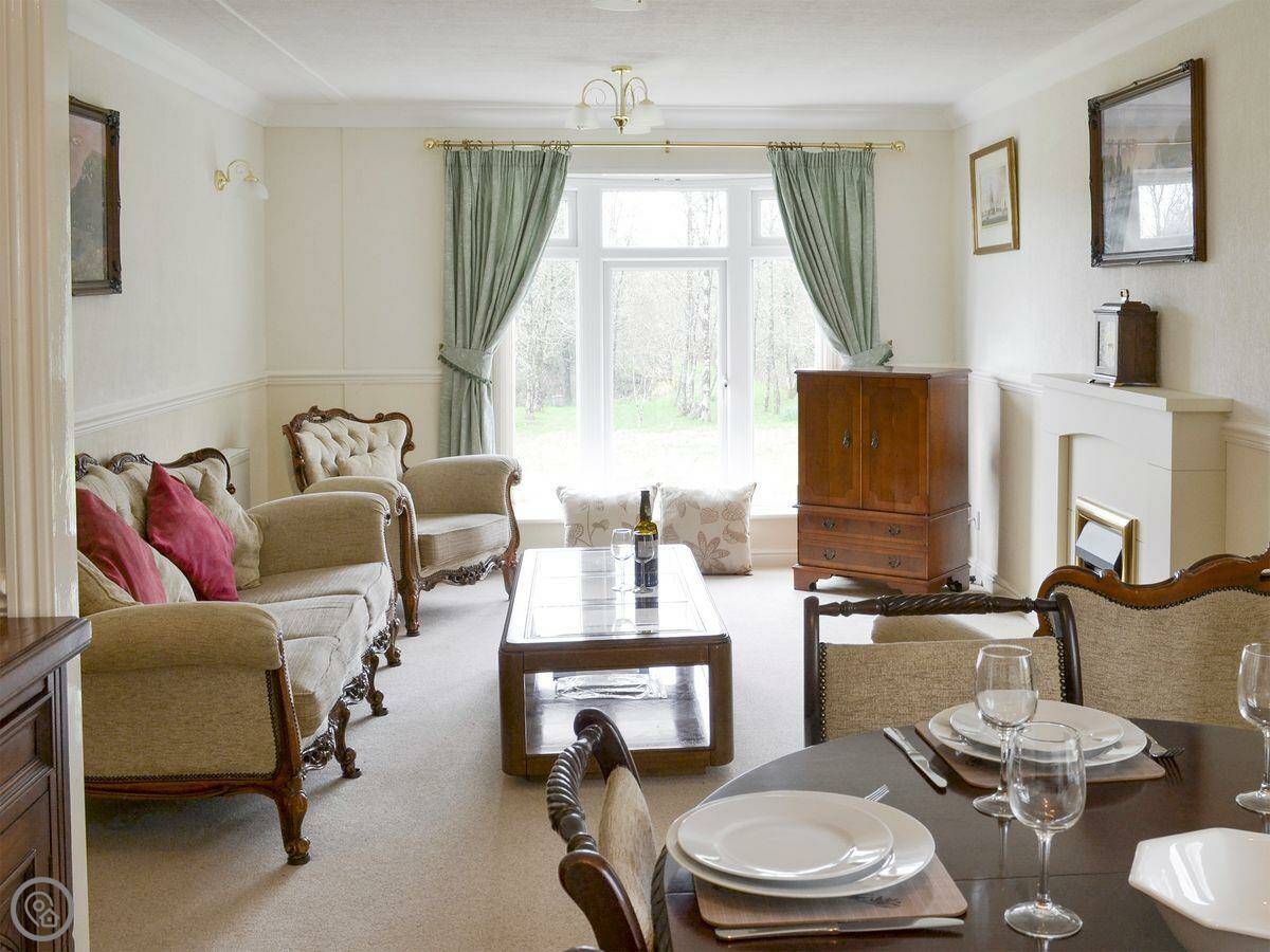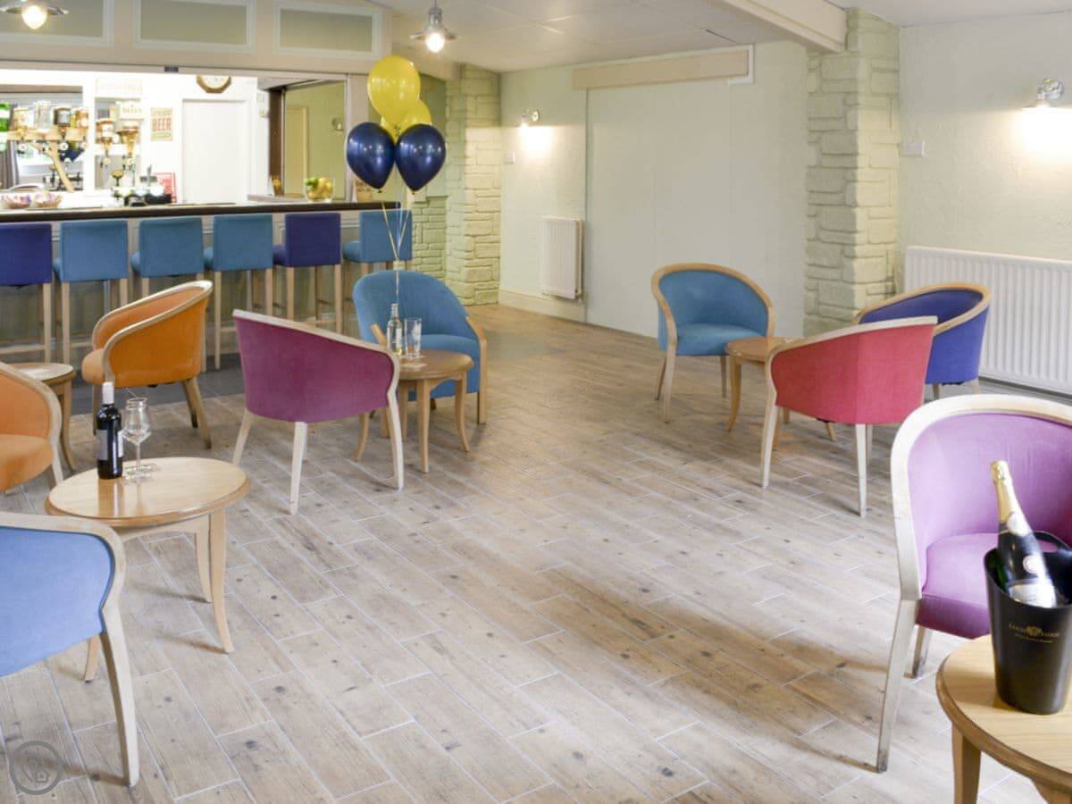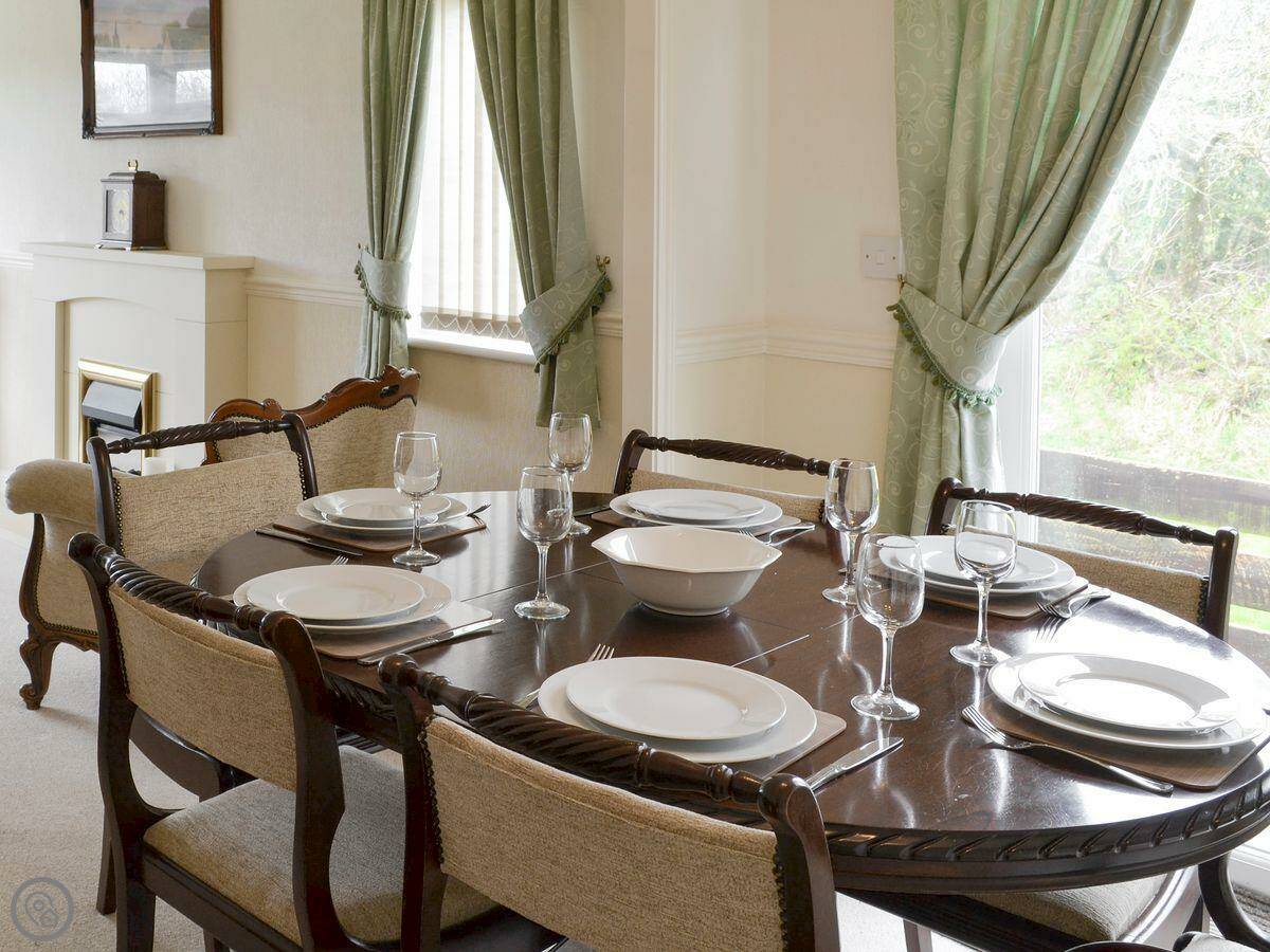 Inside it's open plan, with the kitchen, dining and living area all together. There's a TV, dishwasher, washing machine, and bedding is included. You park right next to the lodge.
