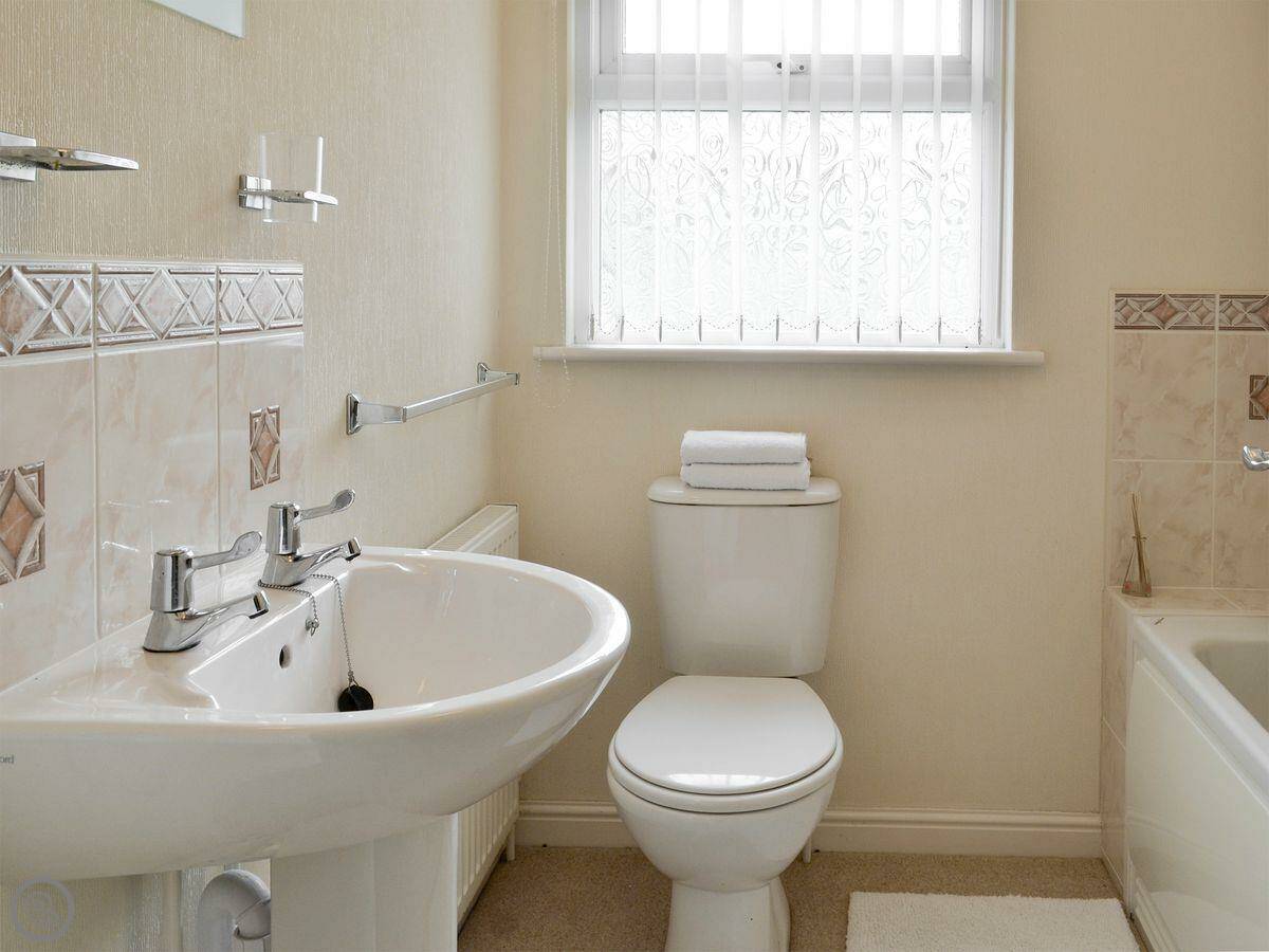 It sleeps four people in two bedrooms, and each bedroom has its own bathroom. It's got a 4 Star rating, which is good. It's modern and comfortable. There are a few other lodges next to it, but they're all spaced out so it still feels private. You can book other lodges together if you're a bigger group.