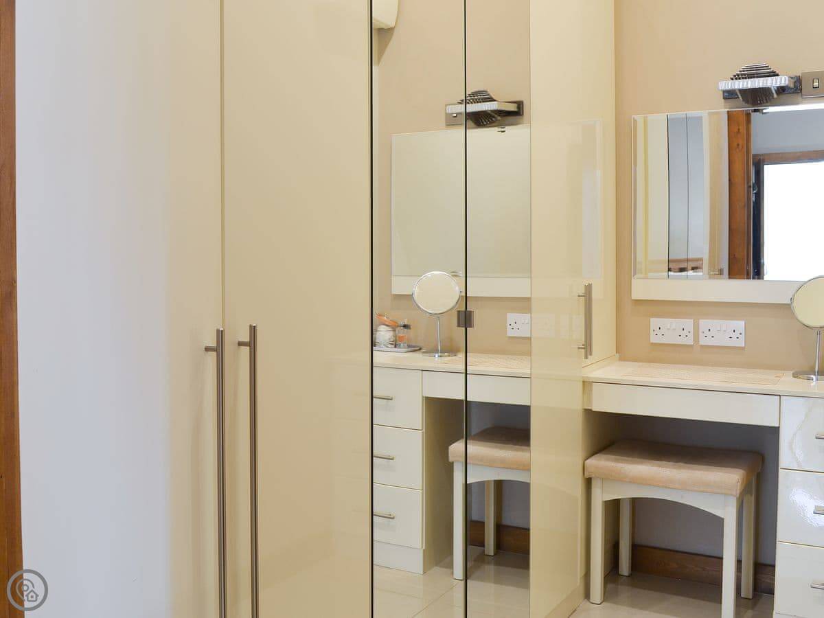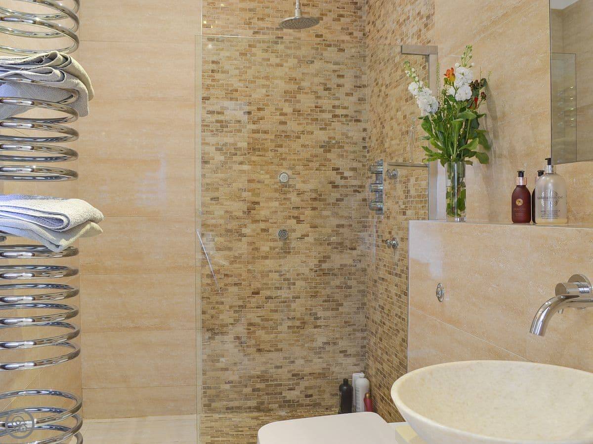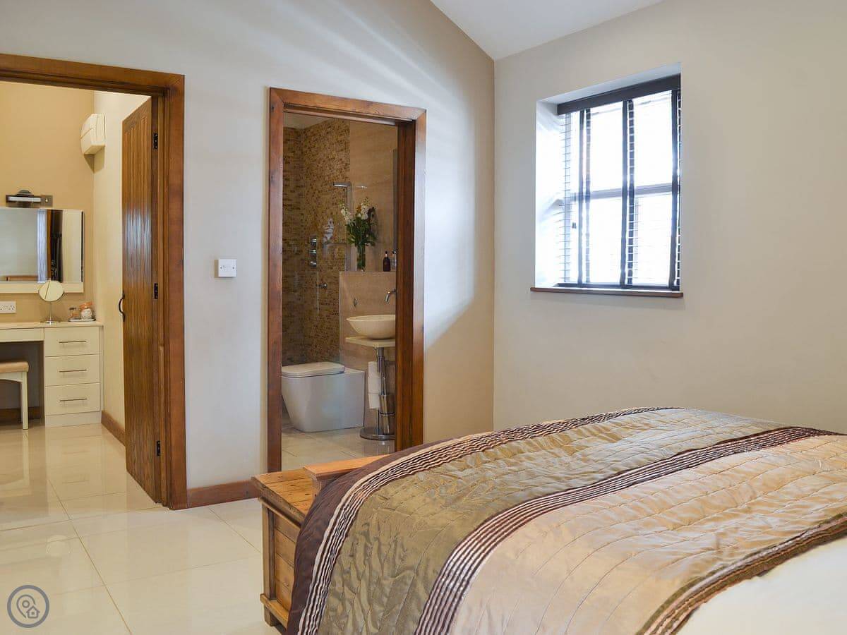 It sleeps four. There are three bedrooms, so you've got a spare room maybe for the bags. Two bathrooms, one is en-suite. It's a 5 Star place, which means it's all been done to a high standard. Underfloor heating, that sort of thing.