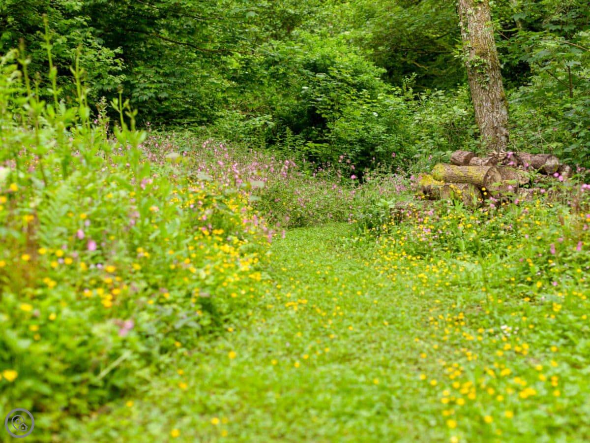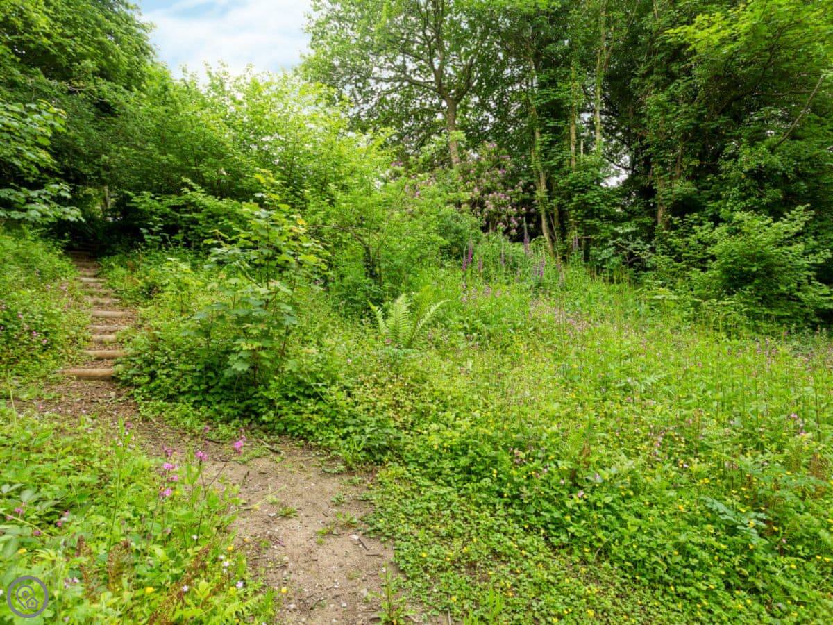 You have access to nearly four acres of land with private paths. It's good for a walk without leaving the property. We allow up to two dogs. There's on-site parking and a patio garden.