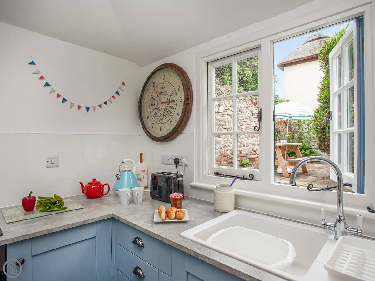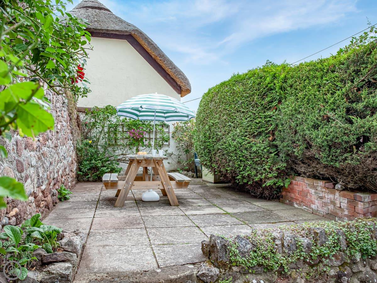 Lobster Cottage is in Holcombe. It's a thatched place, one of three cottages joined together. It's old, 17th century, so the ceilings are low in parts. You get a sunny, enclosed patio out the back.