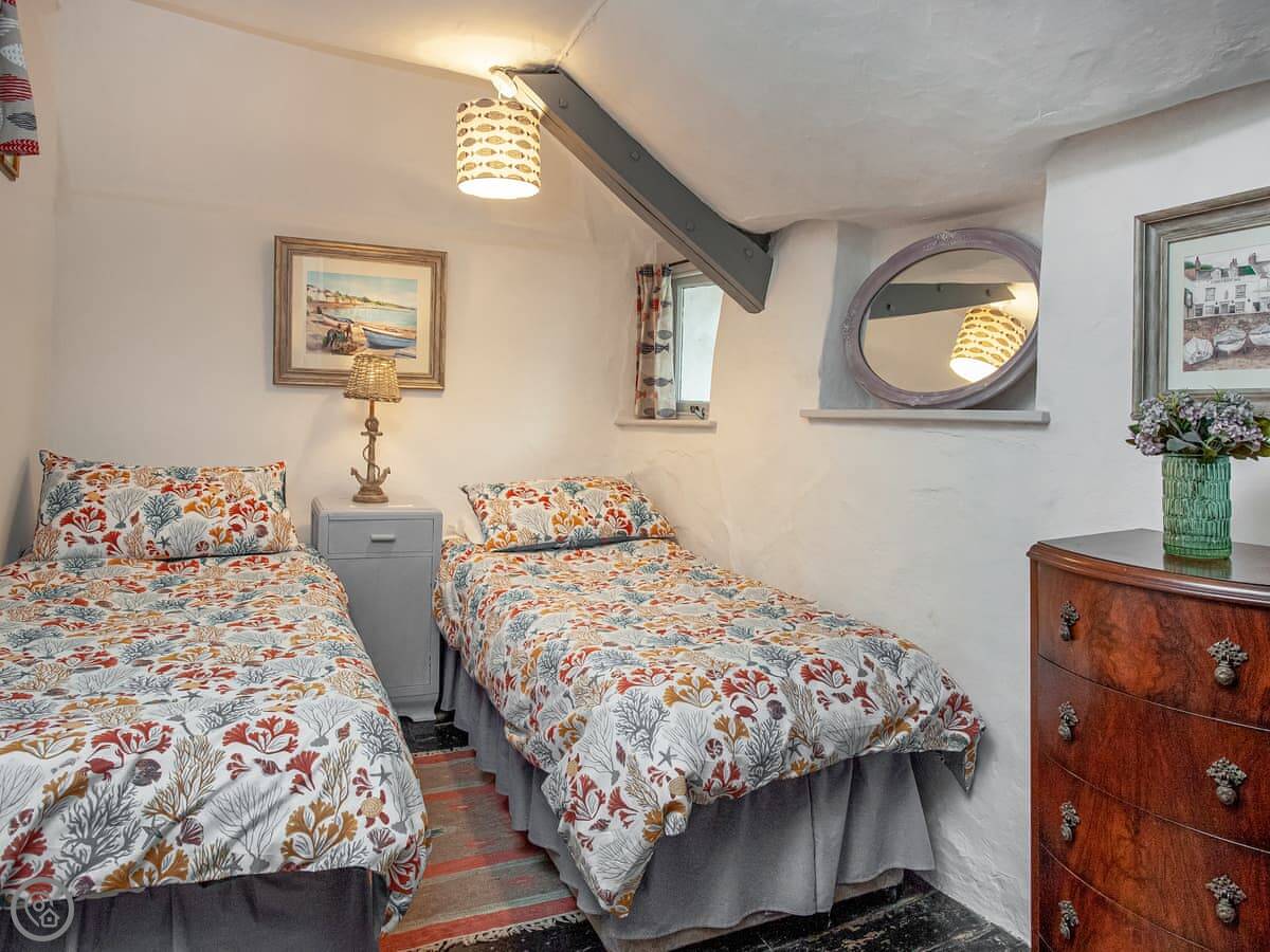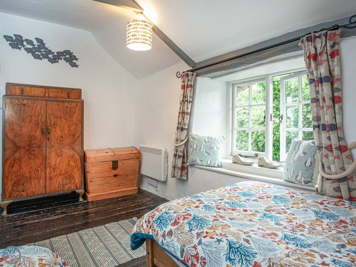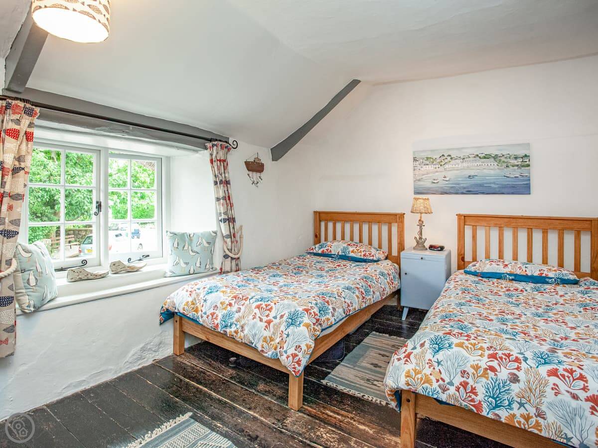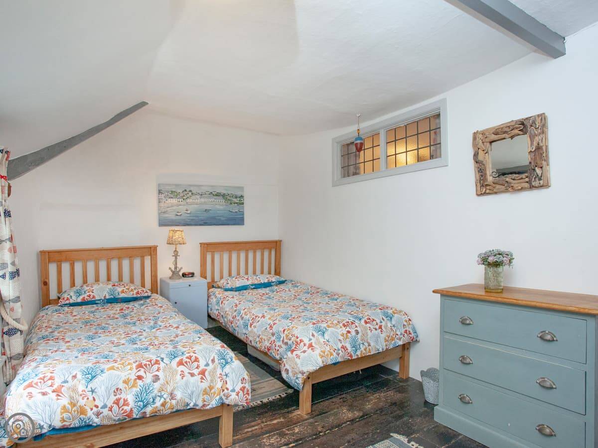 It sleeps five. There are two bedrooms upstairs and one bathroom. It's a 4 Star place, so it's comfortable and well looked after. You can bring two dogs.