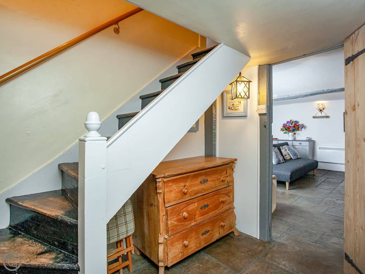 The stairs are cottage stairs, so they're a bit steep and curved. Just take care.
