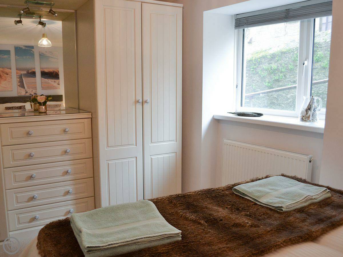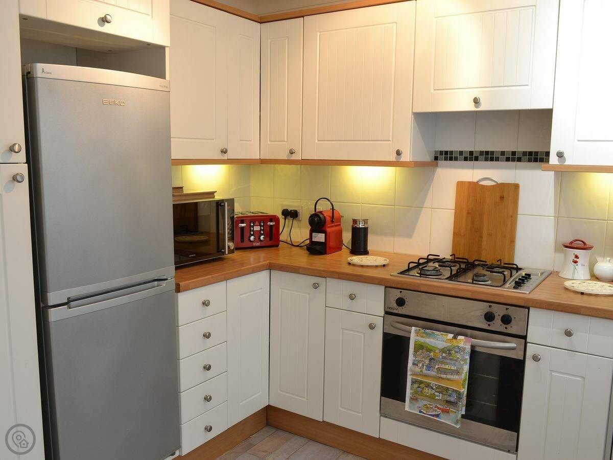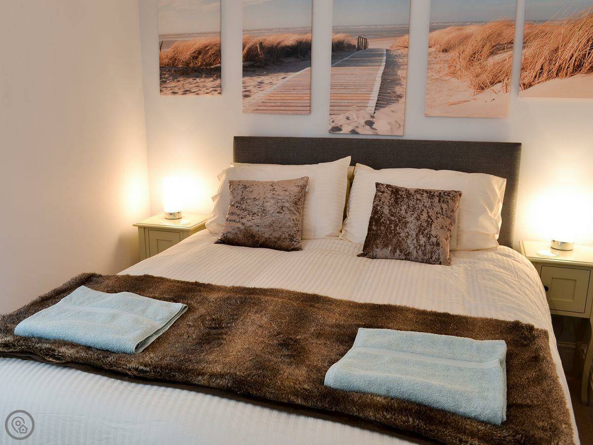 It's got a 4 Star rating. That means it's been checked and it's a good standard. It's modern inside, open plan. There's a dishwasher and a washing machine. Bedding and towels are included. You can park right outside.