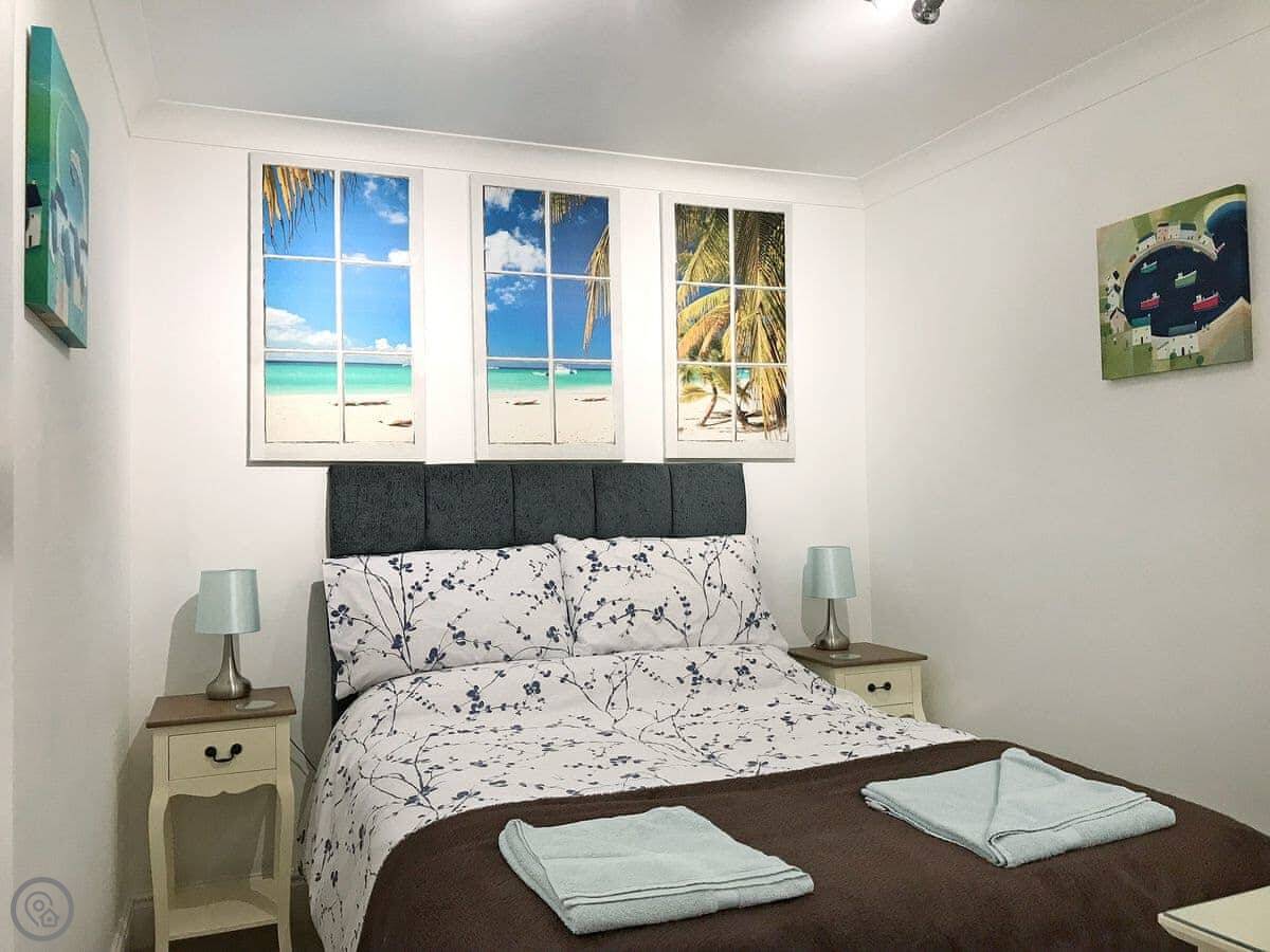 Roland Cottage is a two bedroom place on one floor in Falmouth. It sleeps four. There's one bathroom with a shower. You can bring two dogs.