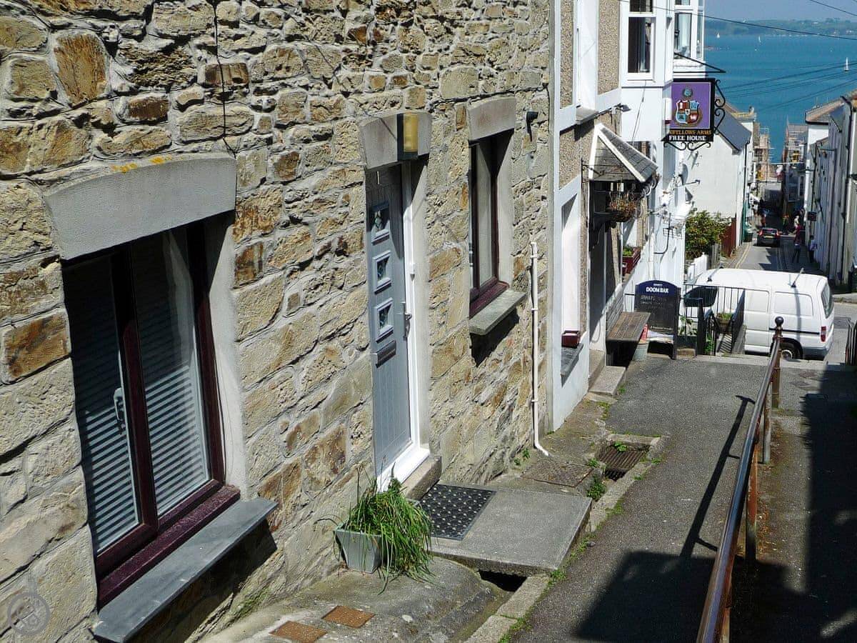 The cottage is in a quiet spot but you're right in town. The front door opens onto a little street. There's a small, quiet pub next door. Shops and restaurants are about two hundred yards away. The main harbour, Events Square, and the beaches are a ten minute walk.