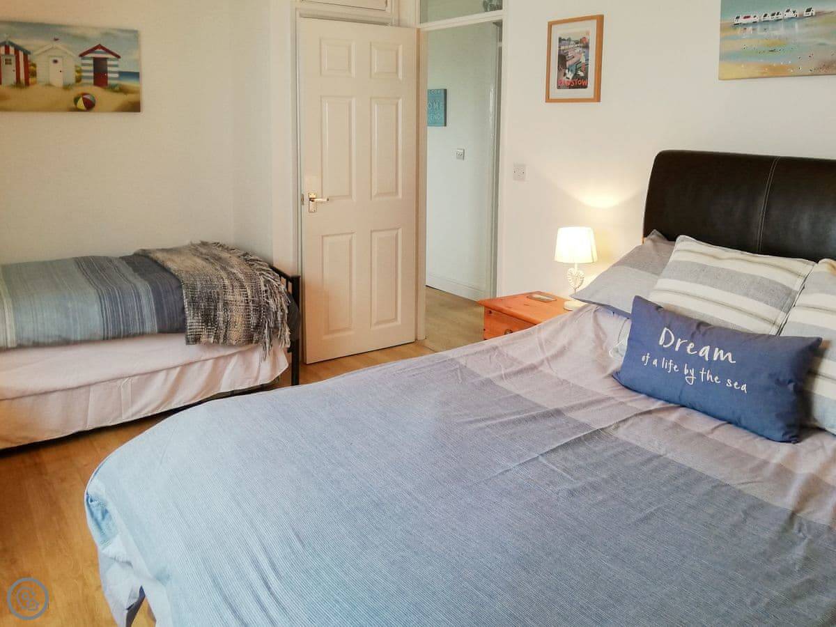 It sleeps five. There are two bedrooms and one bathroom. It has a 4 Star rating. It's clean and well looked after. You can bring one dog.
