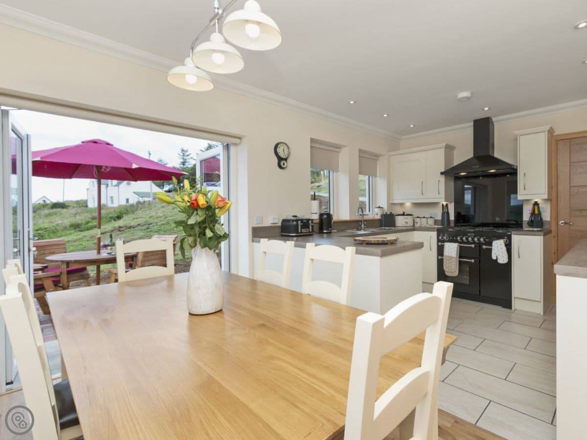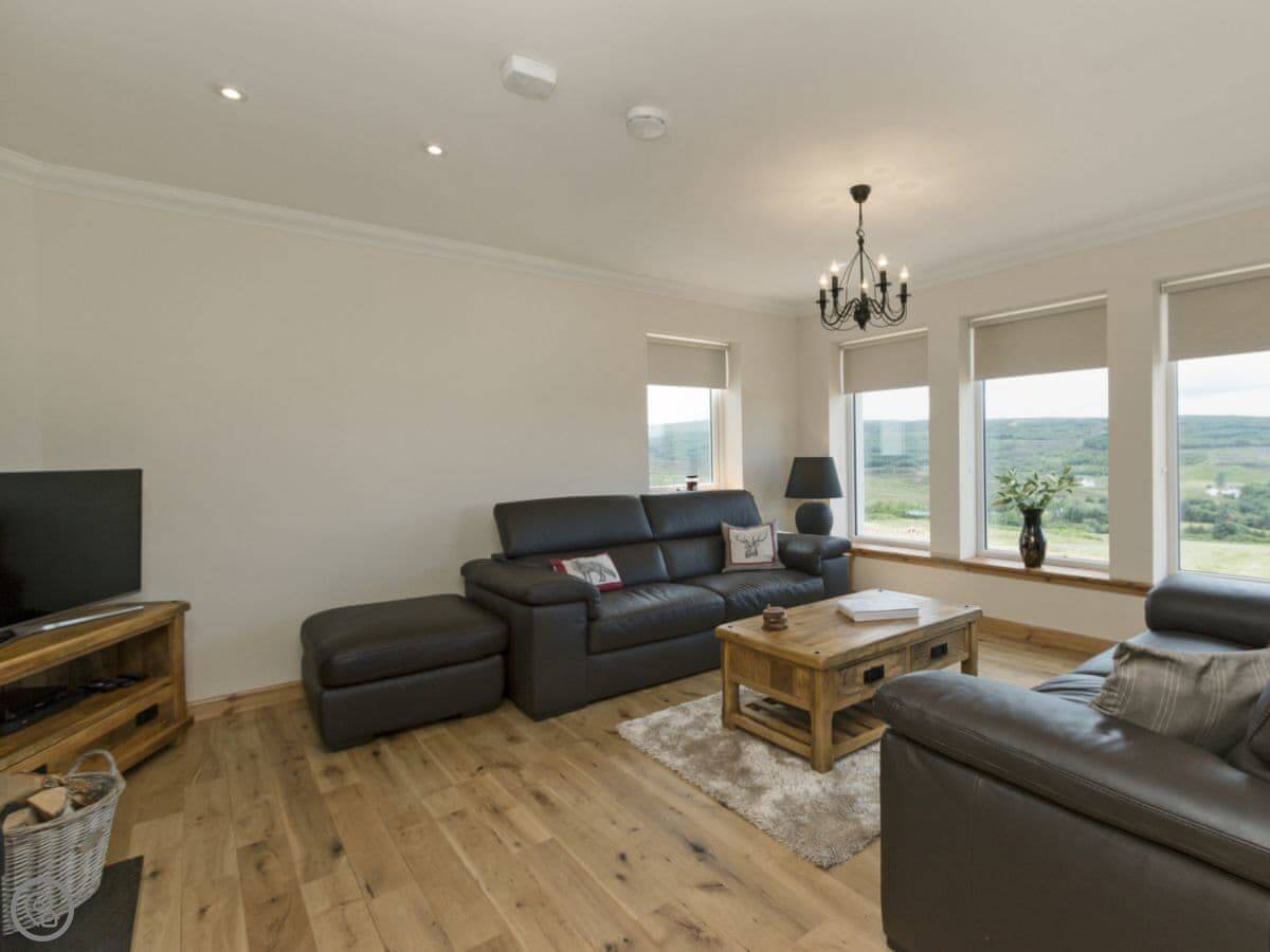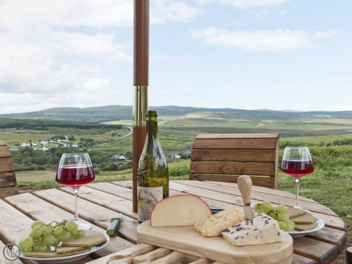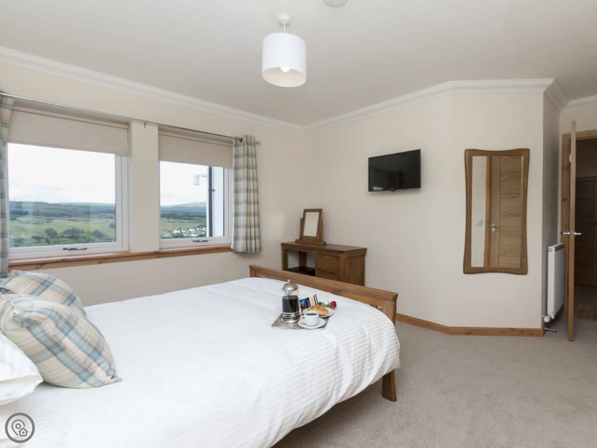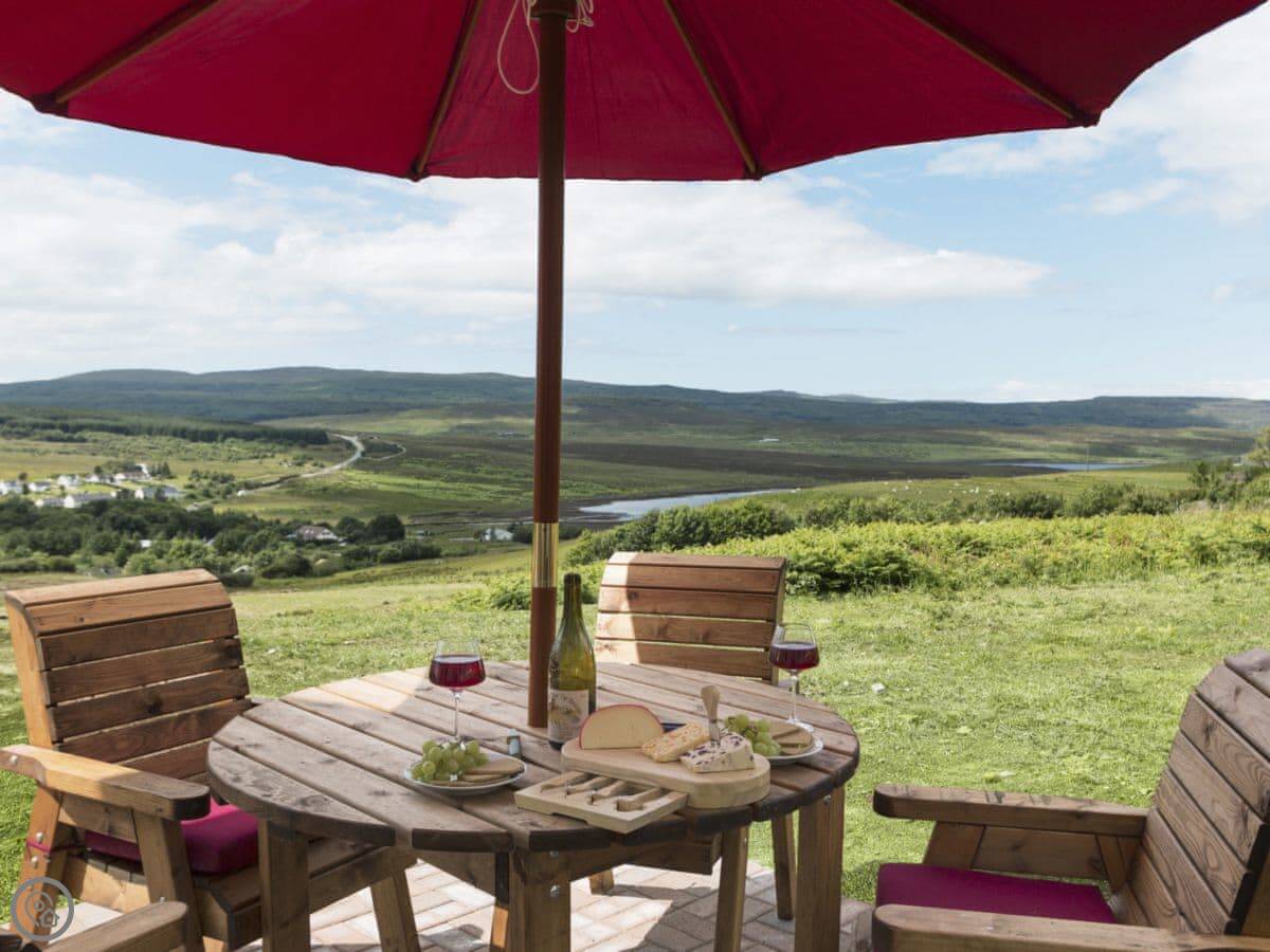 There's a pub that does food about a mile down the road in Edinbane. For a proper shop, you'll need to go to Portree. That's about a 15-minute drive. They've got supermarkets, a swimming pool, and the harbour for boat trips. Dunvegan is about 20 minutes the other way for the castle and the coral beach.