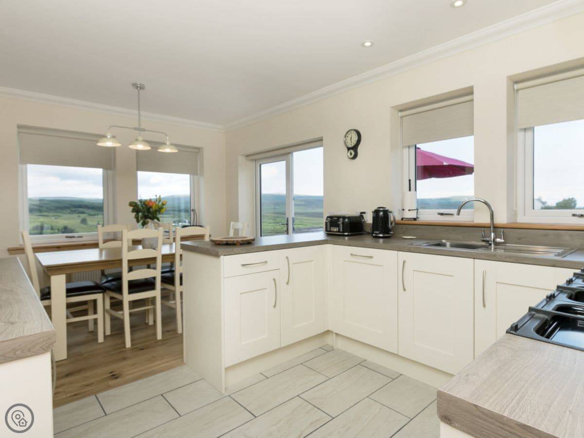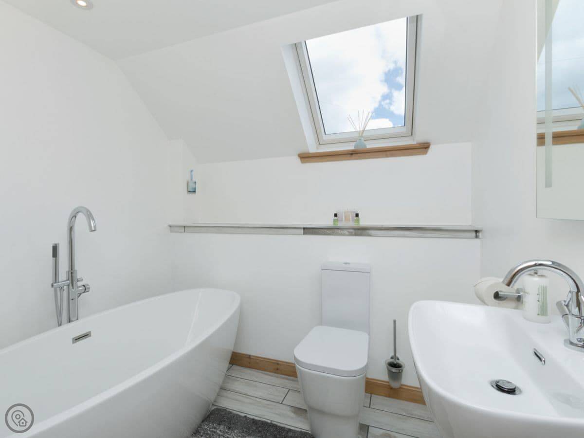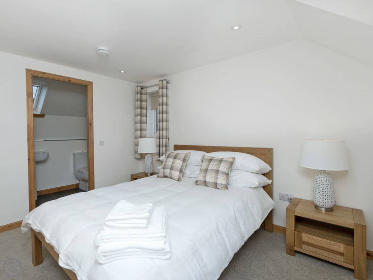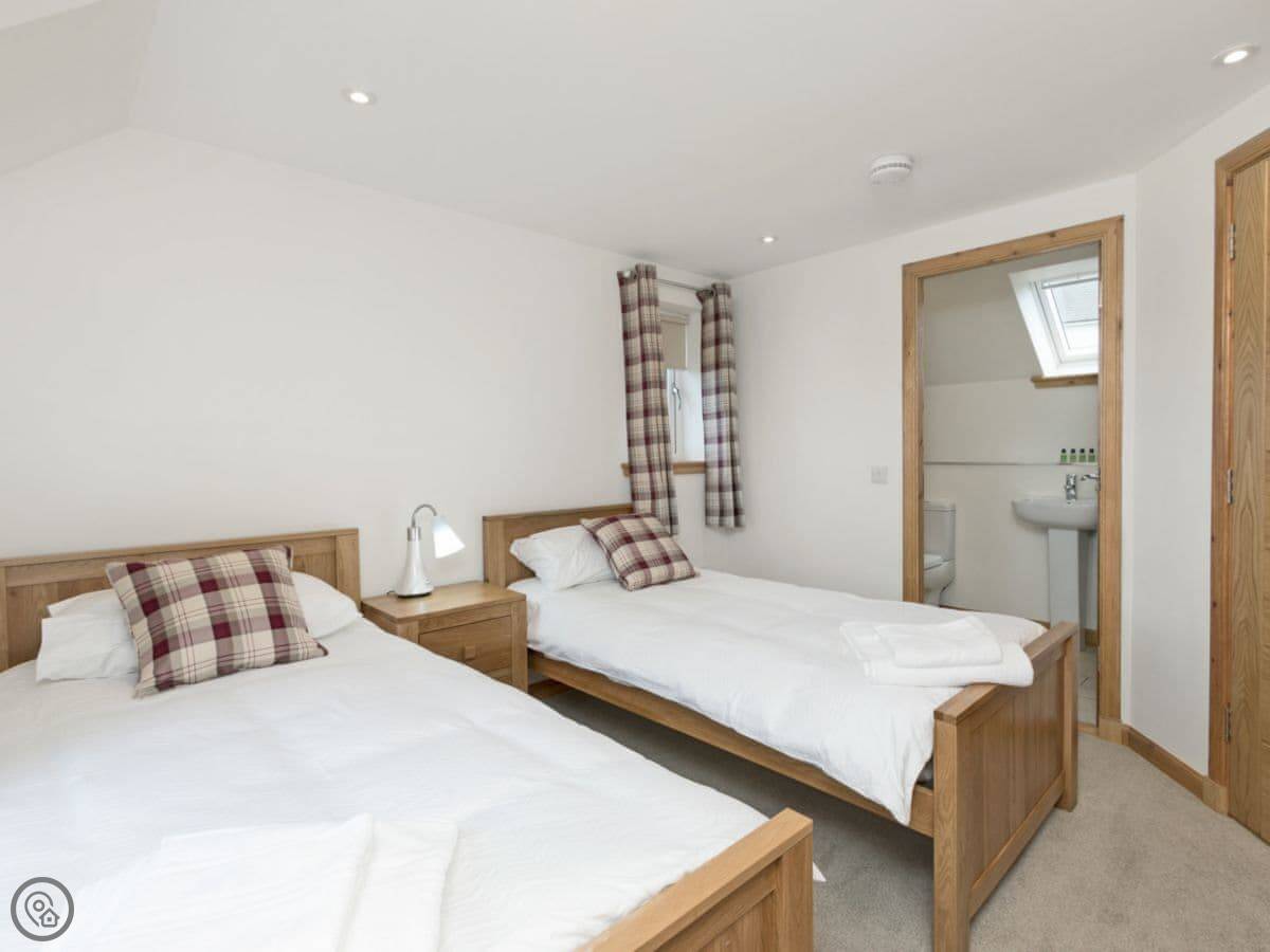 It sleeps six people. Three bedrooms, and each one has its own bathroom attached. That's the main thing people like about it. It's got a 4 Star rating, which means it's well-equipped and comfortable. It's warm and dry, which is the main thing you want here.
