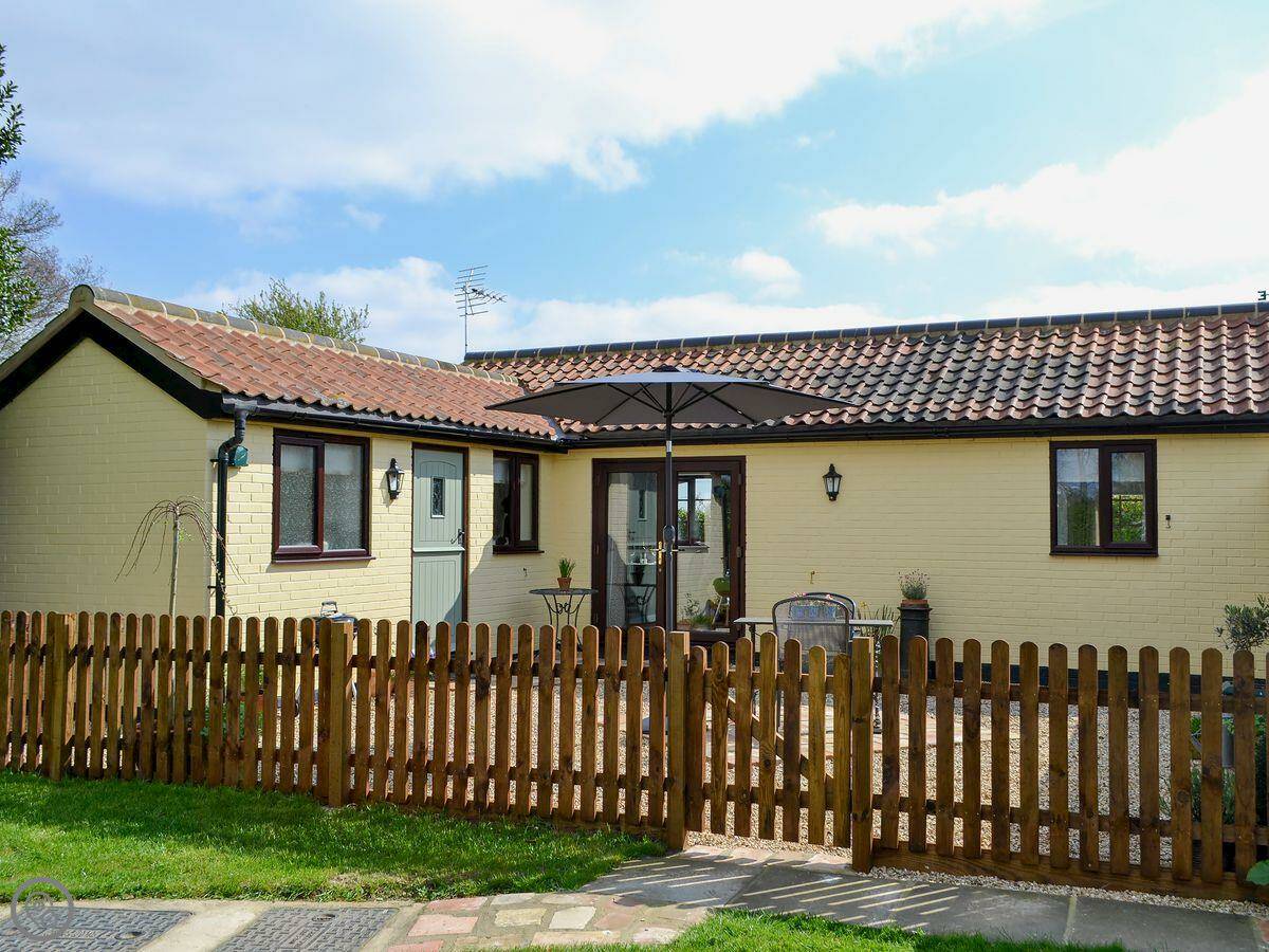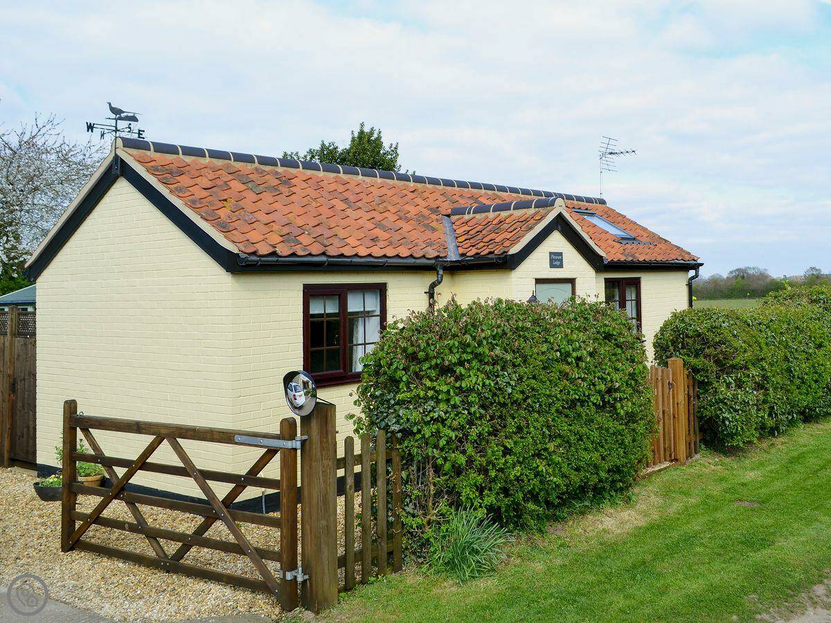 Pheasant Lodge is a detached single-storey place on Welborne Common. It's next to our house, and a golf course is just over the fence. It's very quiet, out on a country lane. The view from the front is fields.