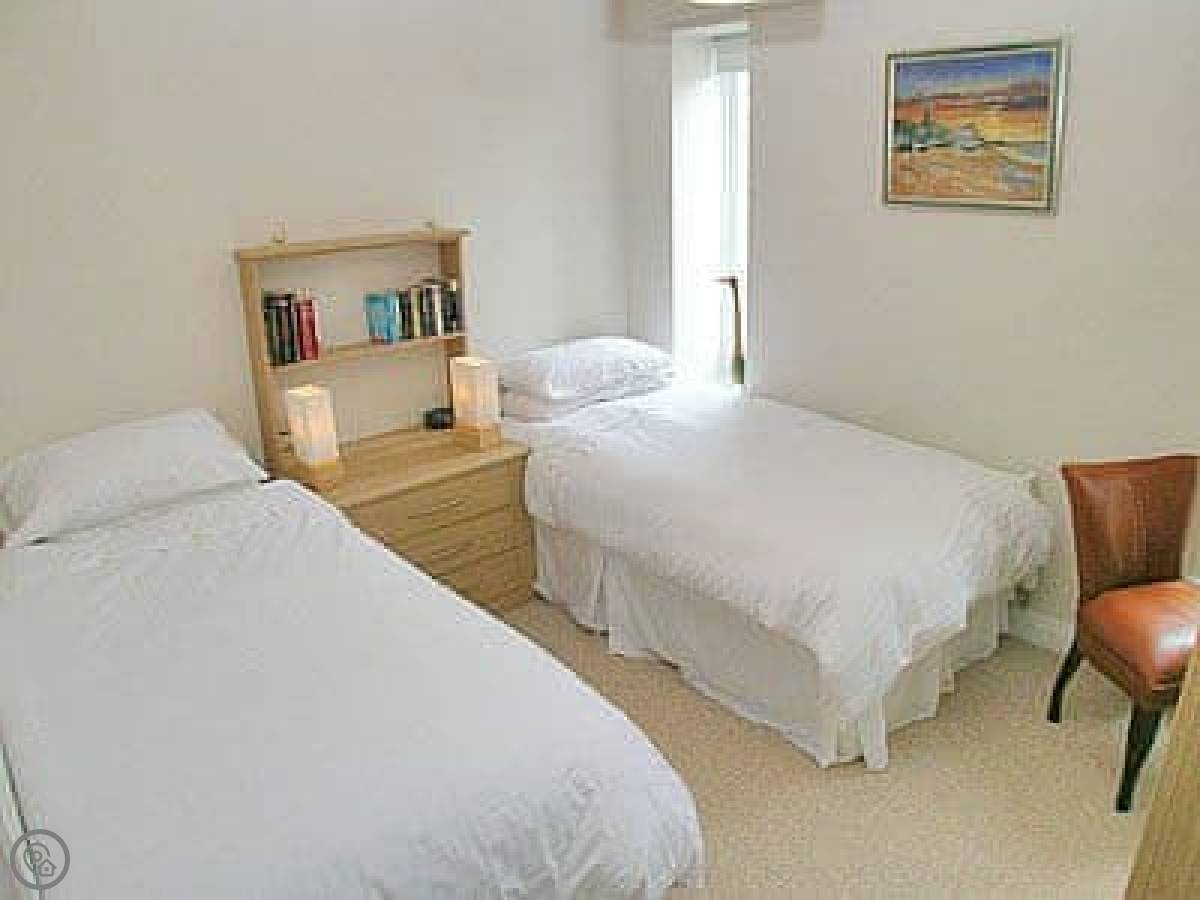 It sleeps four. Two bedrooms, both with their own bathroom. It's got a 3 Star rating. Everything's clean and works. It's a converted dairy, so the layout is open plan downstairs. The walls are thick, it's quiet.