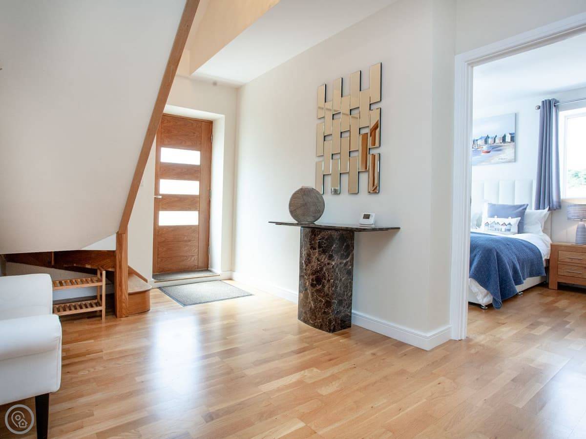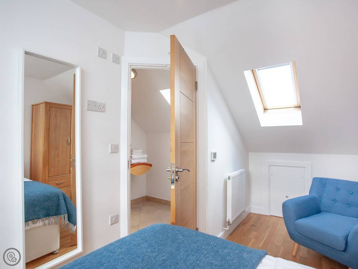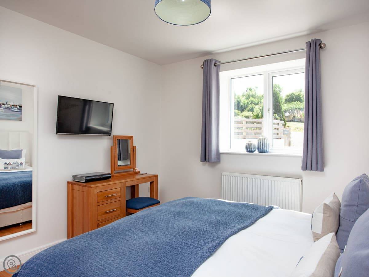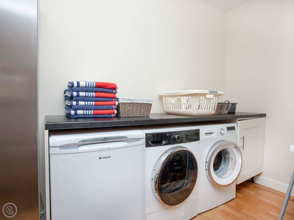 Inside, it's open plan. There's a washing machine, dishwasher, Wi-Fi, and TV. Bedding and towels are included. We can provide a cot and highchair if you need them. Sorry, no pets.