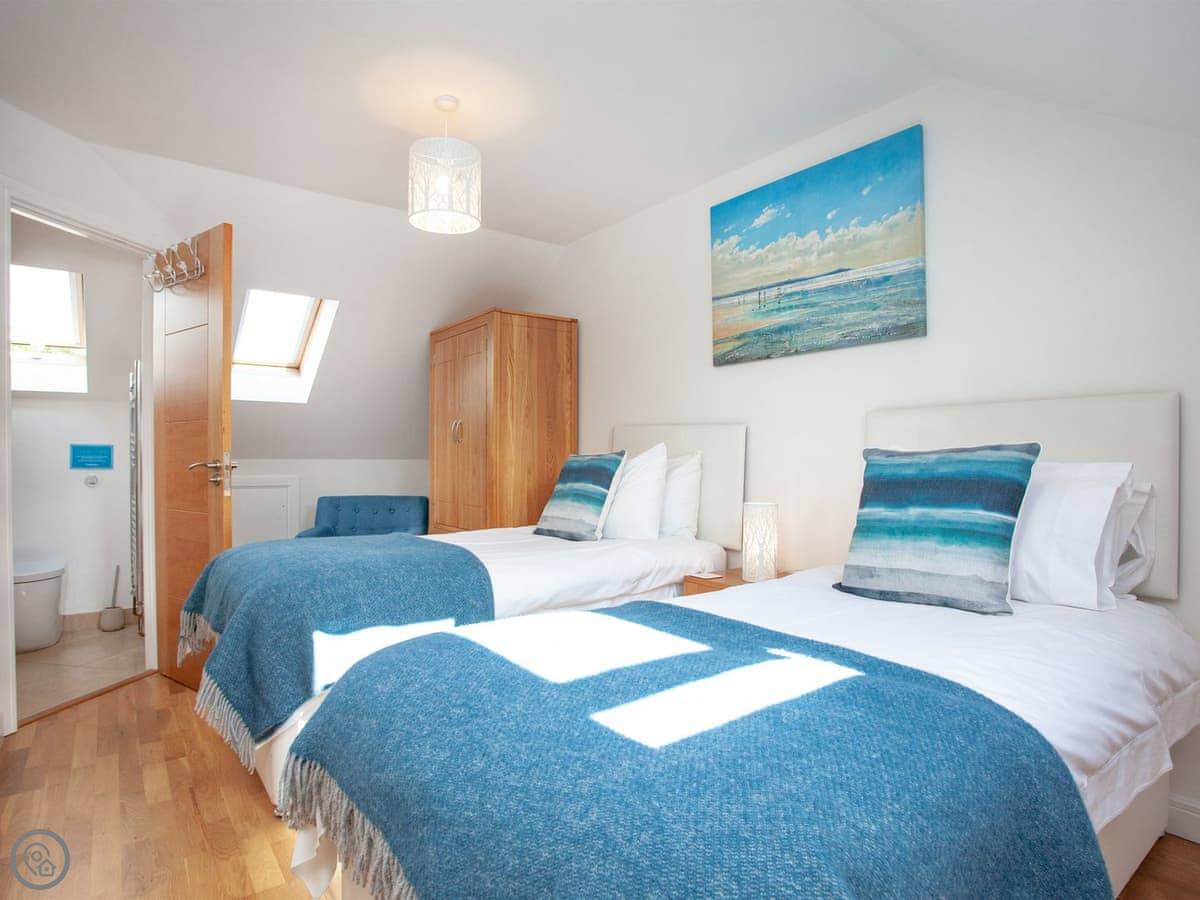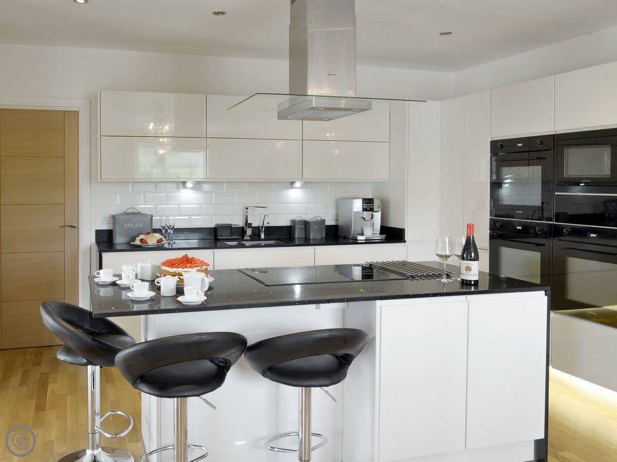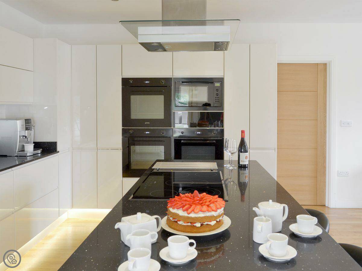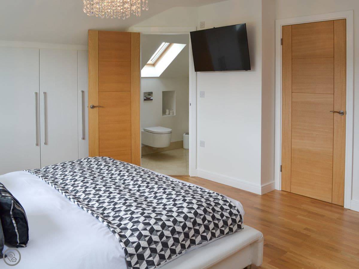 Inside, it's open plan. There's a washing machine, dishwasher, Wi-Fi, and TV. Bedding and towels are included. We can provide a cot and highchair if you need them. Sorry, no pets.