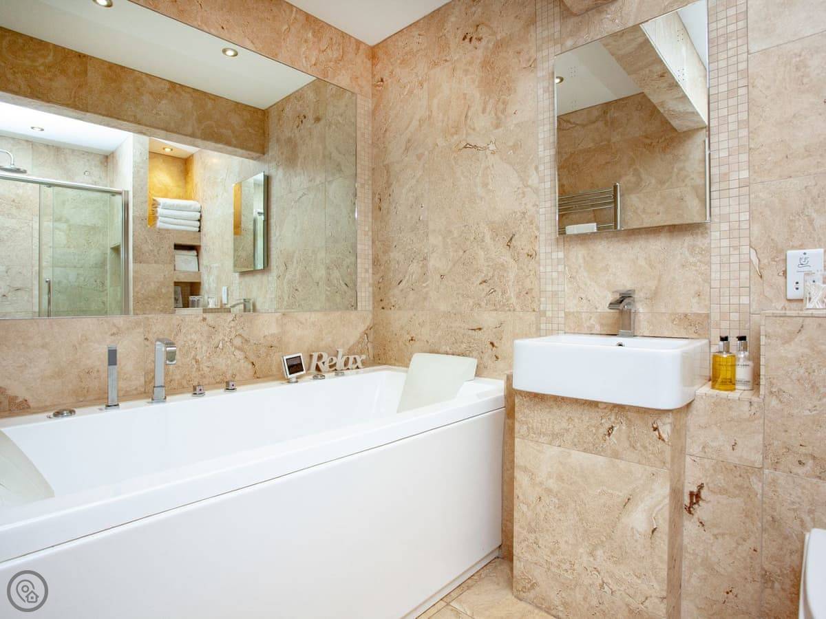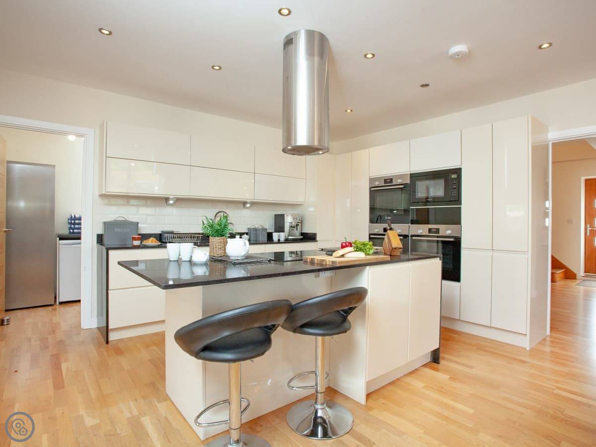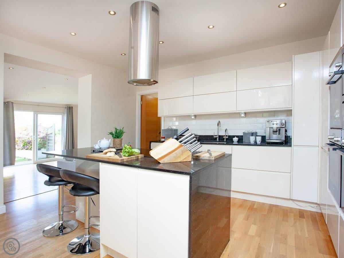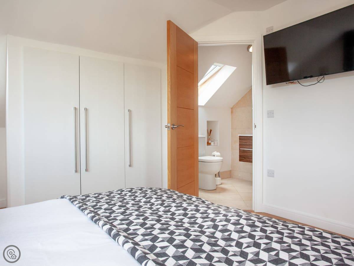 Inside, it's open plan. There's a washing machine, dishwasher, Wi-Fi, and TV. Bedding and towels are included. We can provide a cot and highchair if you need them. Sorry, no pets.