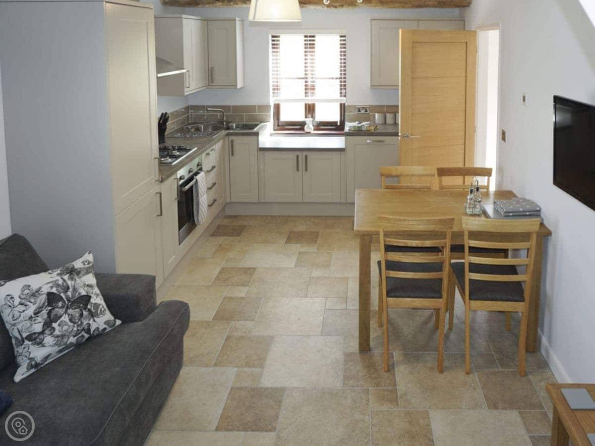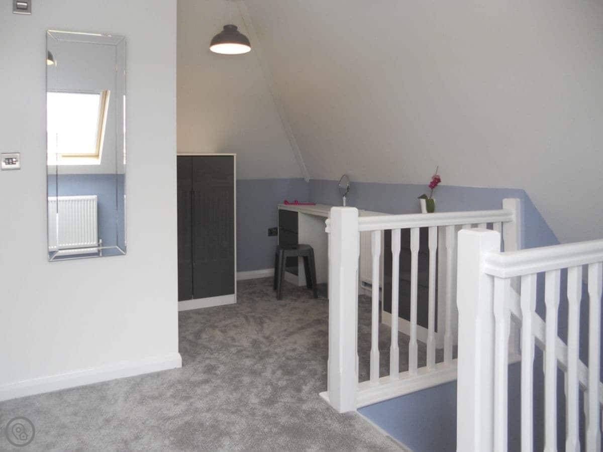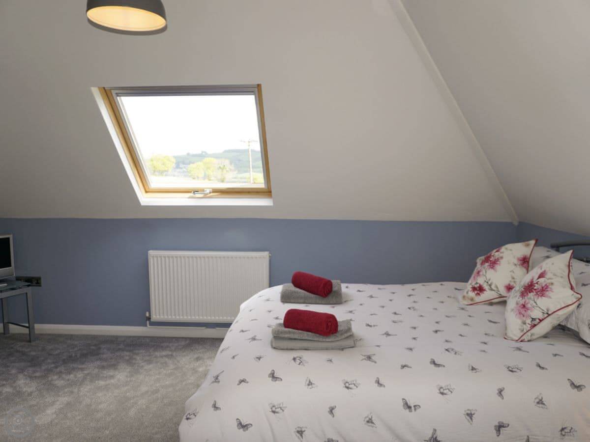 It sleeps four. Two bedrooms, both doubles, and two bathrooms. One's on the ground floor. It's a 4 Star place, so it's comfortable and well-equipped. It's got proper walls, being stone and cob, so it feels solid.