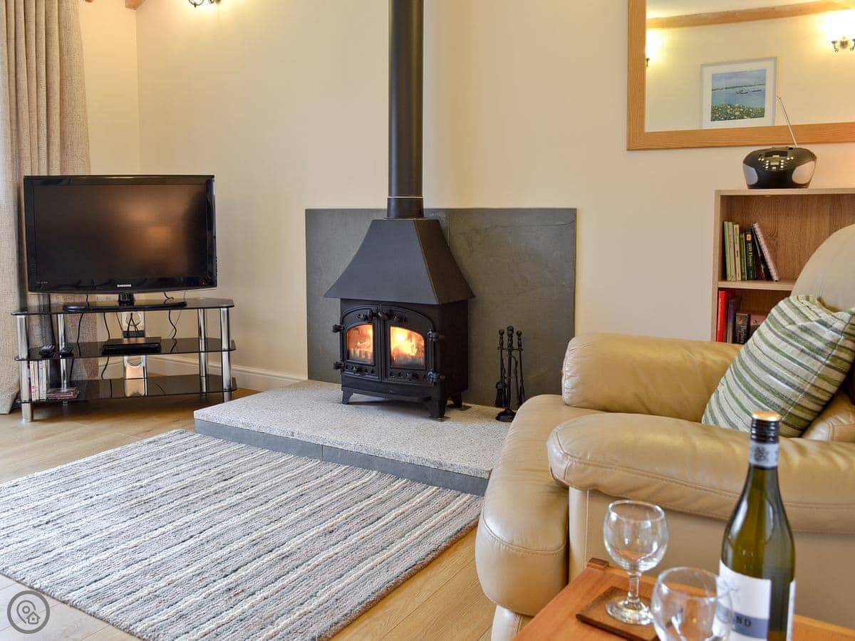 Inside, there's a woodburning stove, a washing machine, and a dishwasher. We include the bedding and towels. There's a TV and WiFi. We can provide a cot and a highchair. You can bring one dog.