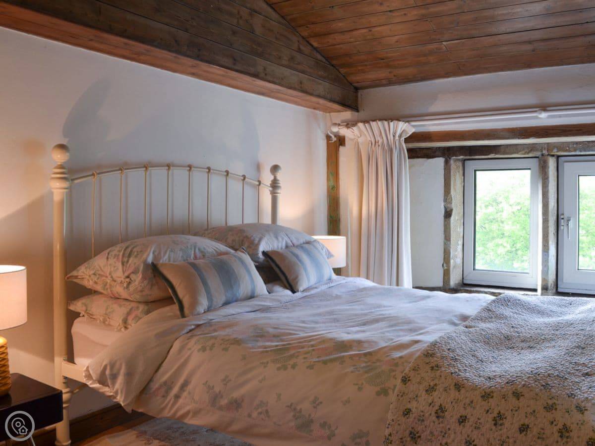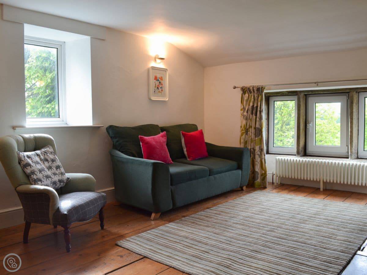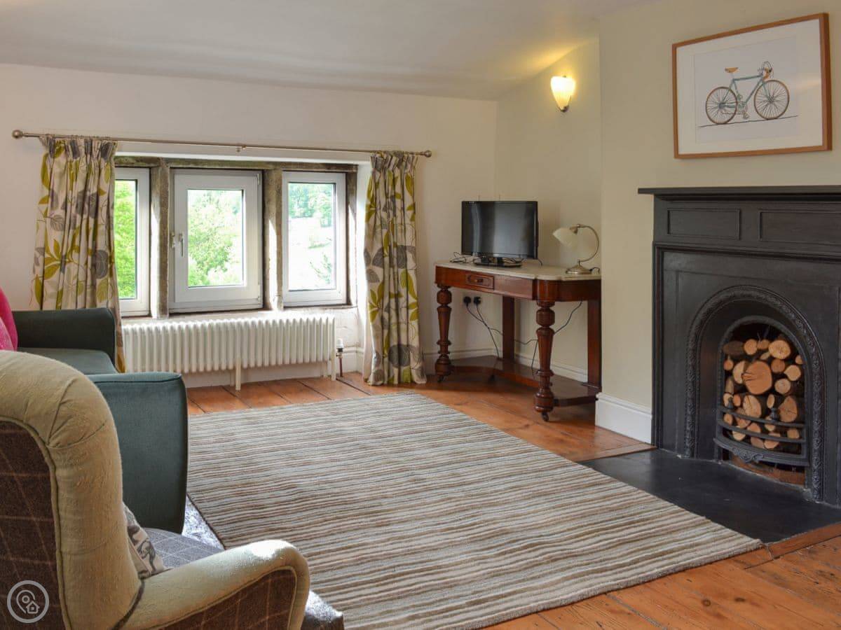 Inside, it's a decent size for three. There's an open fire place in the living room. The windows are the old mullioned type, which is nice but it makes some of the window seats into fixed seats, just so you know. The stairs are steep. Not dangerously so, but they are cottage stairs.