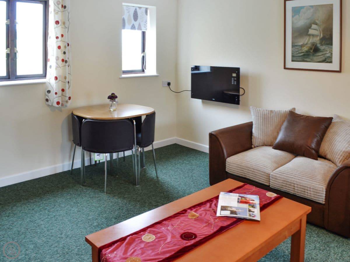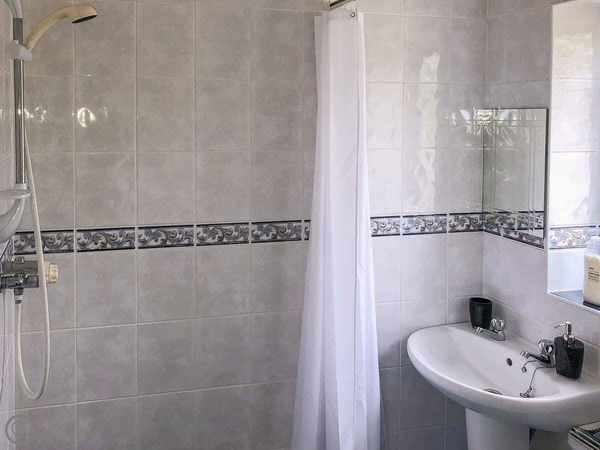 It sleeps four. Two bedrooms, each with its own bathroom. One has a shower, the other is a wet room. It's got a 4 Star rating. It's comfortable and clean.