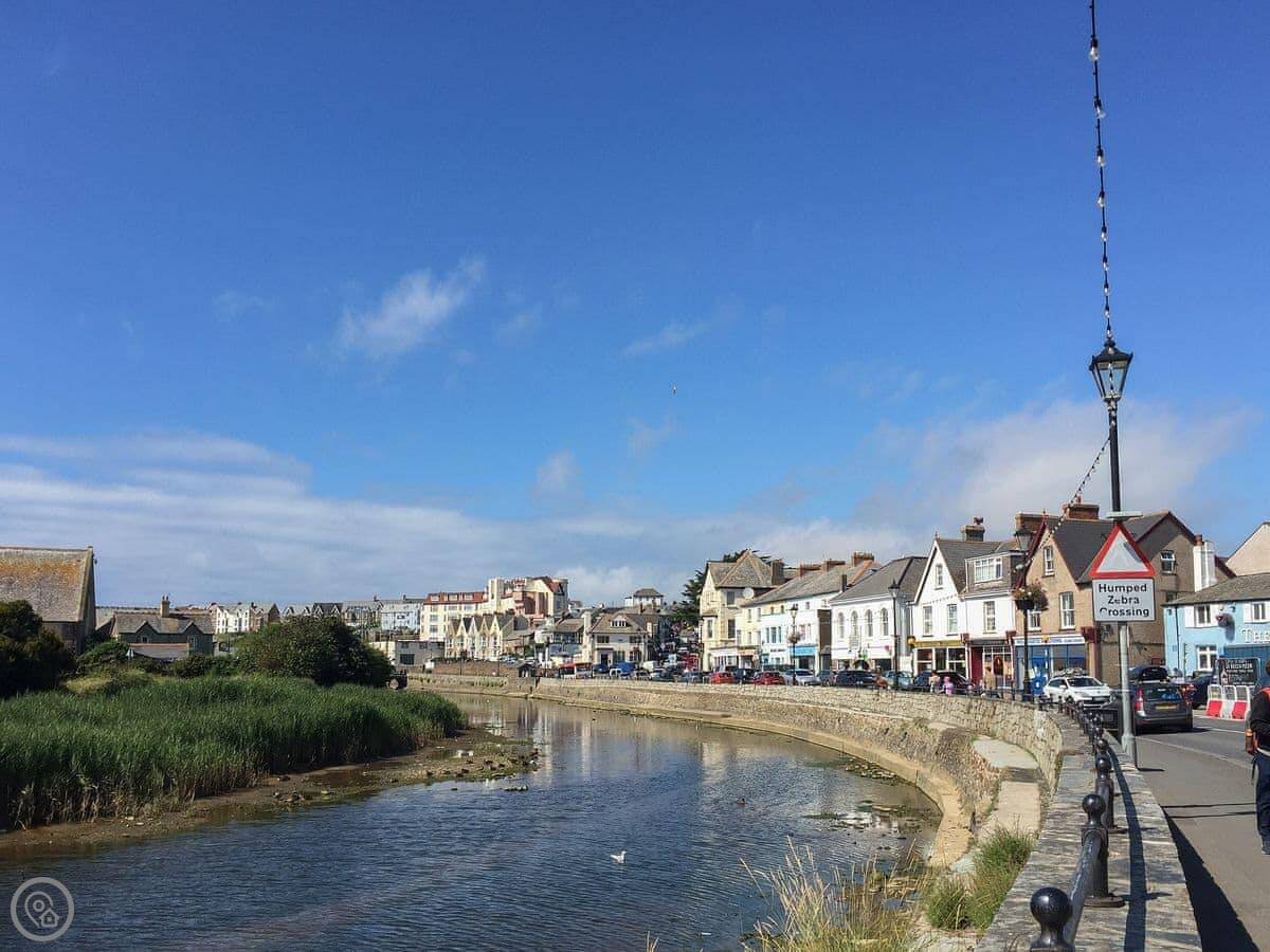 The village itself is quiet. There's a shop and a pub about five minutes' walk away. The pub does food. The coast is about two and a half miles. Widemouth Bay is the main beach for swimming and surfing. Bude is just a bit further. It's got shops, places to eat, and a few other beaches.
