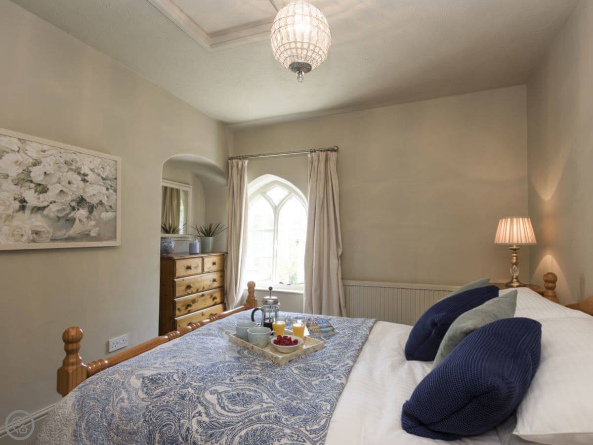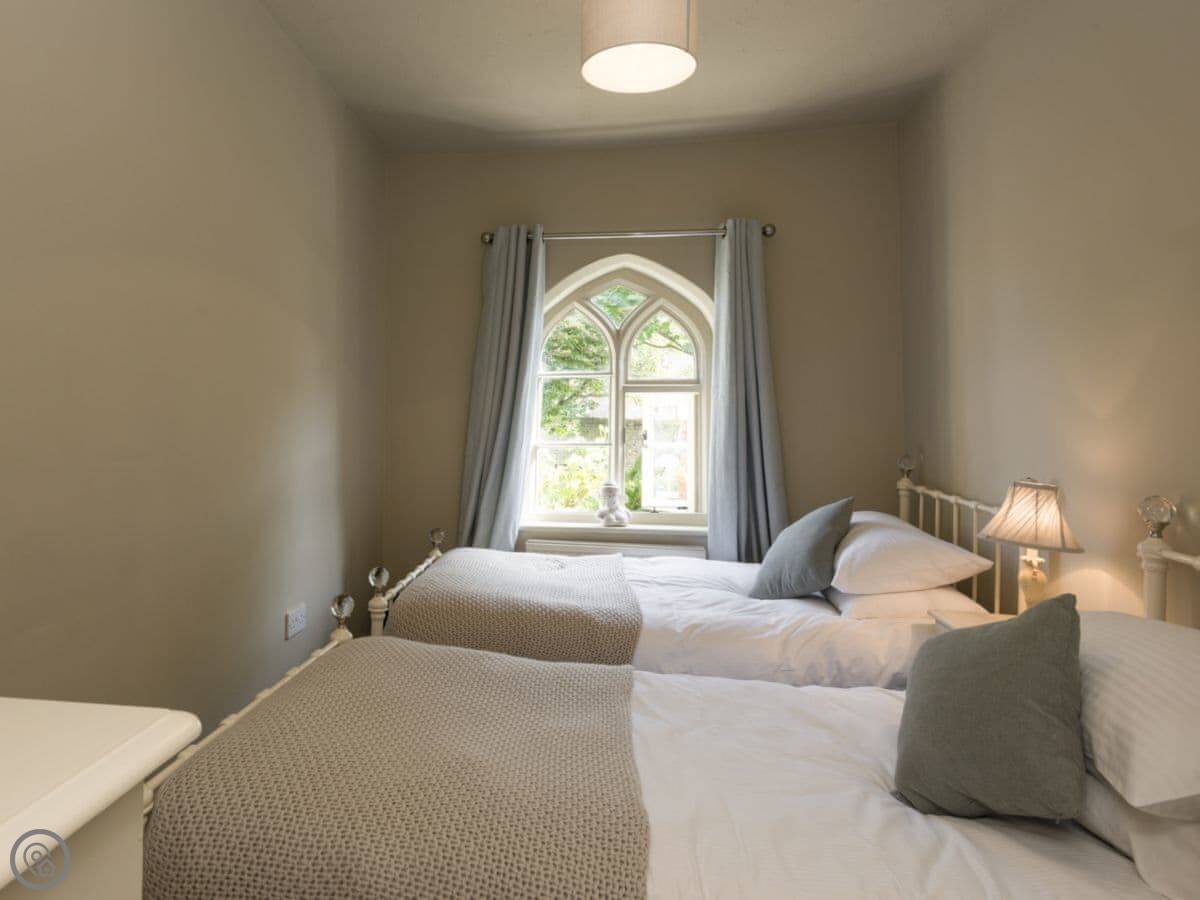 The cottage sleeps five. Three bedrooms, one bathroom. It's got a 4 Star rating. It's comfortable and well looked after. The stairs are a bit tight and winding, which is normal for an old place.