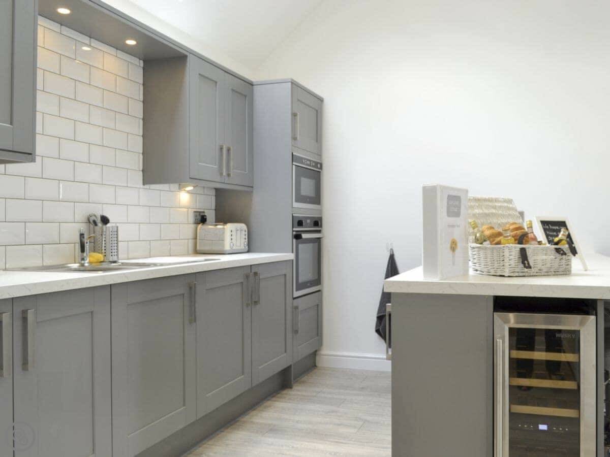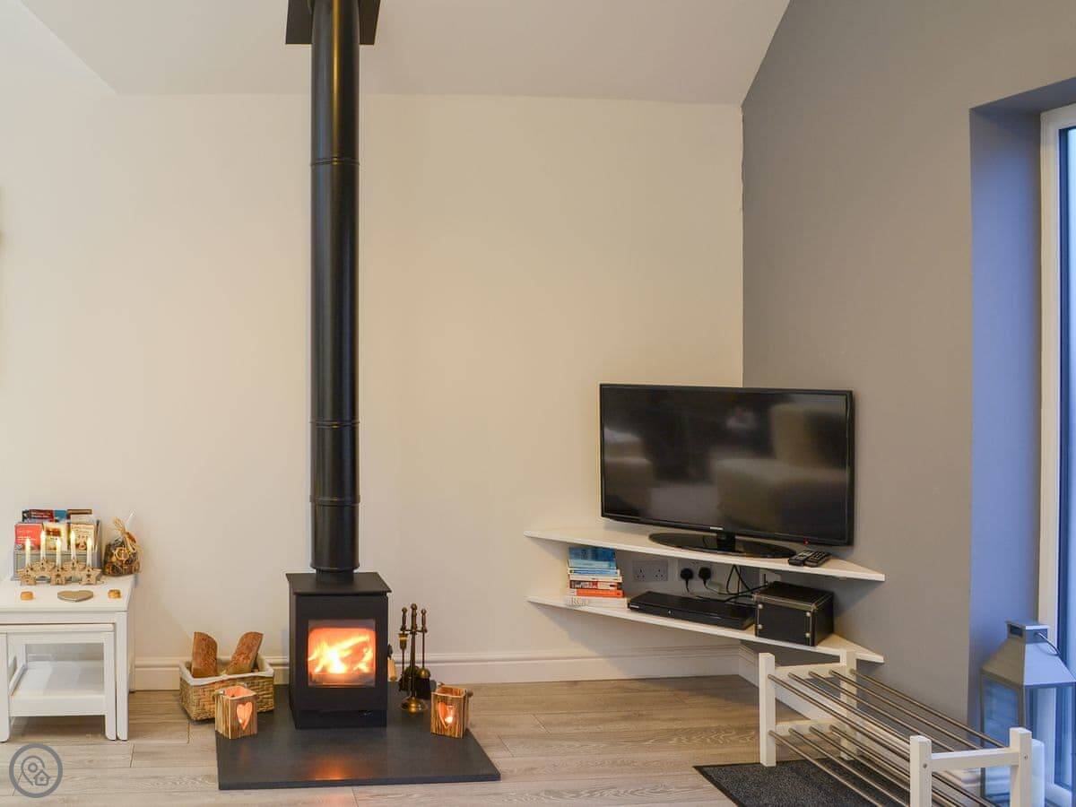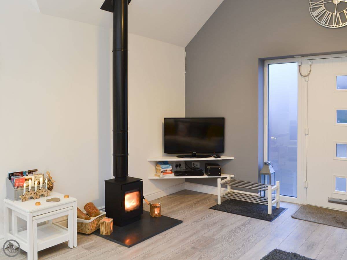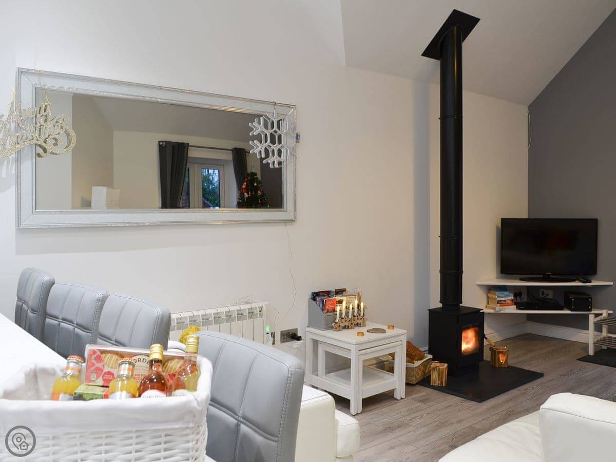 For facilities, you've got the wood burner, the hot tub, WiFi, a washing machine, a dishwasher, and parking. Bedding and towels are included. There's a cot and highchair if you need them. No pets, sorry.