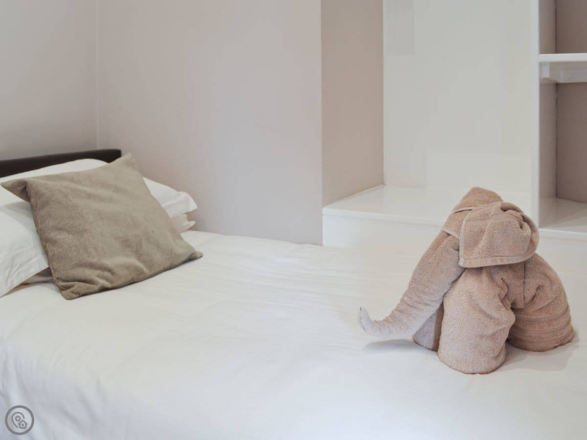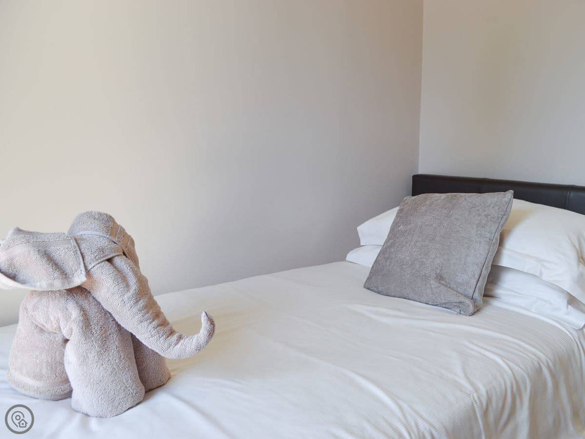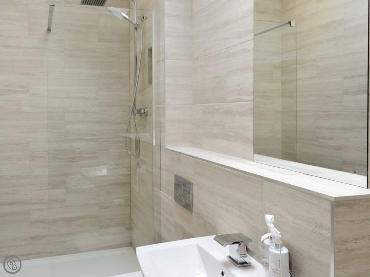 It sleeps four. Two bedrooms, one is a king size bed and the other has twin beds. One bathroom with a shower. The hot tub is on the decking outside and seats five. There's an enclosed garden that's just for you.
