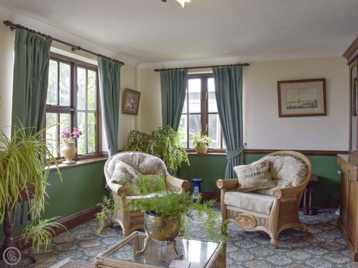 It sleeps six in three bedrooms. Two bathrooms, which is handy. There's a double bedroom downstairs, just off the dining room. We find that's useful if someone doesn't want to do the stairs. There's also a main living room and a sort of sun room at the back, which is a nice spot to sit.