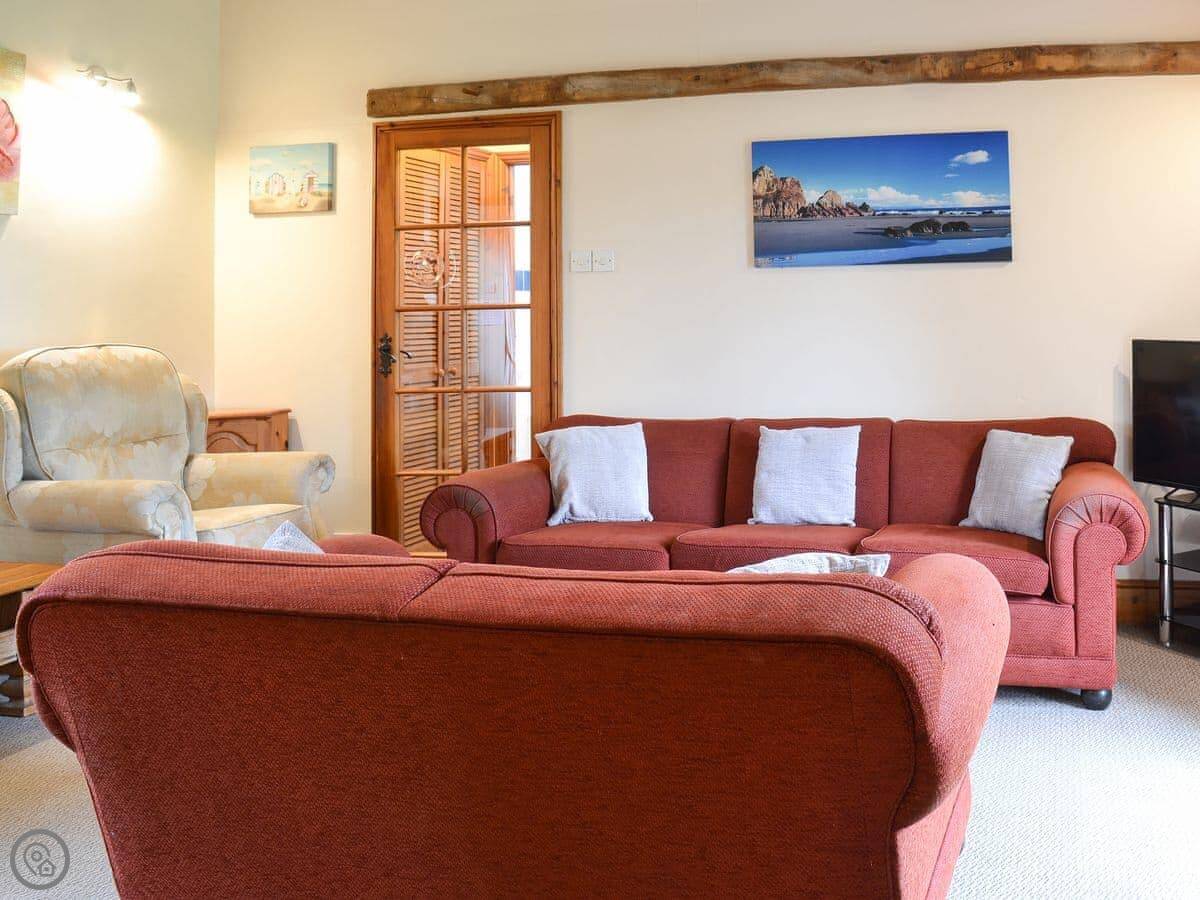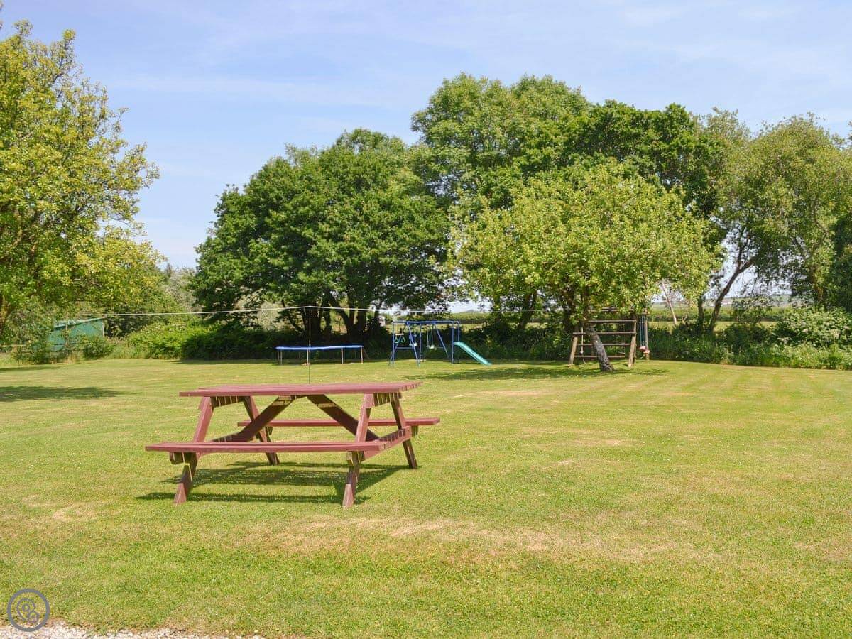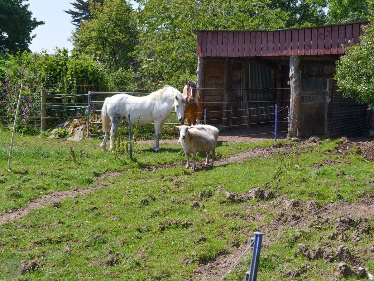 You share some facilities with the other cottages here. There's six acres of our own land to walk around, with an orchard and animals like sheep and ponies. There's a children's play area with swings. There's also a heated indoor swimming pool you can book time in.