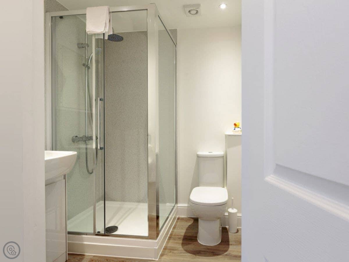 It sleeps six. There are three bedrooms and they all have their own en-suite bathroom, which is useful. It's got a 5 Star rating, so everything is in good order and well presented.