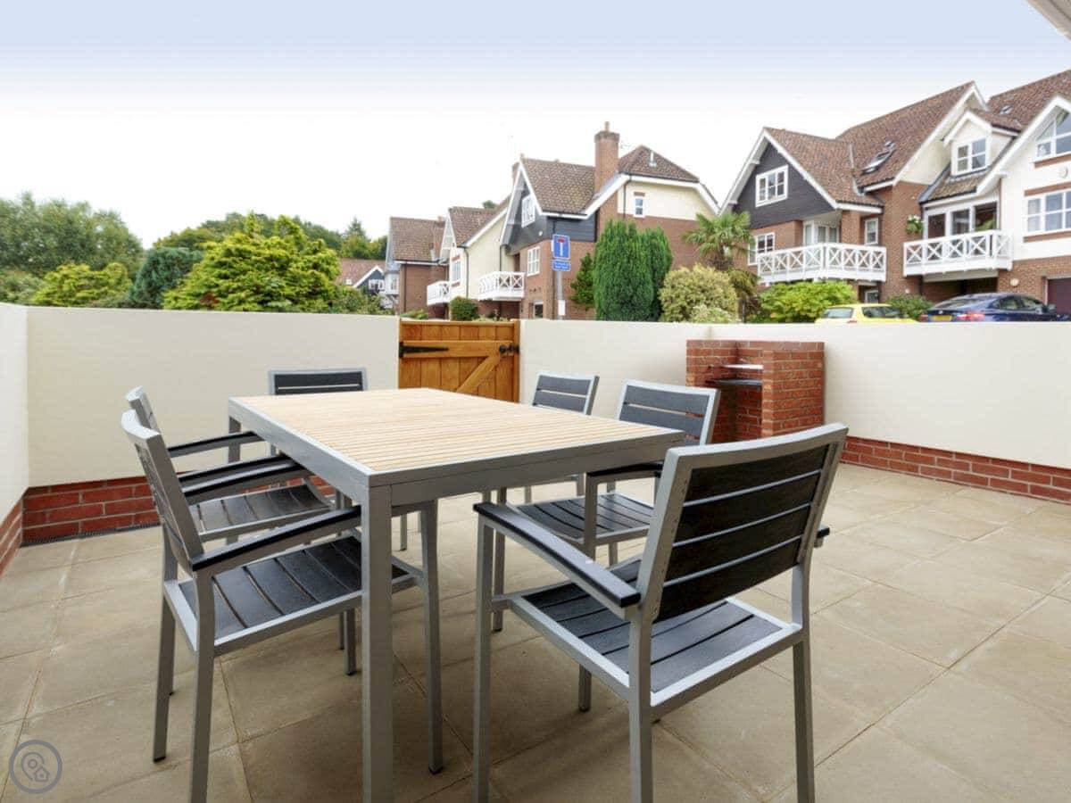 Downstairs, there's a small enclosed courtyard with a barbecue. The main living area is upstairs. It's open plan and has a balcony that gets the evening sun.