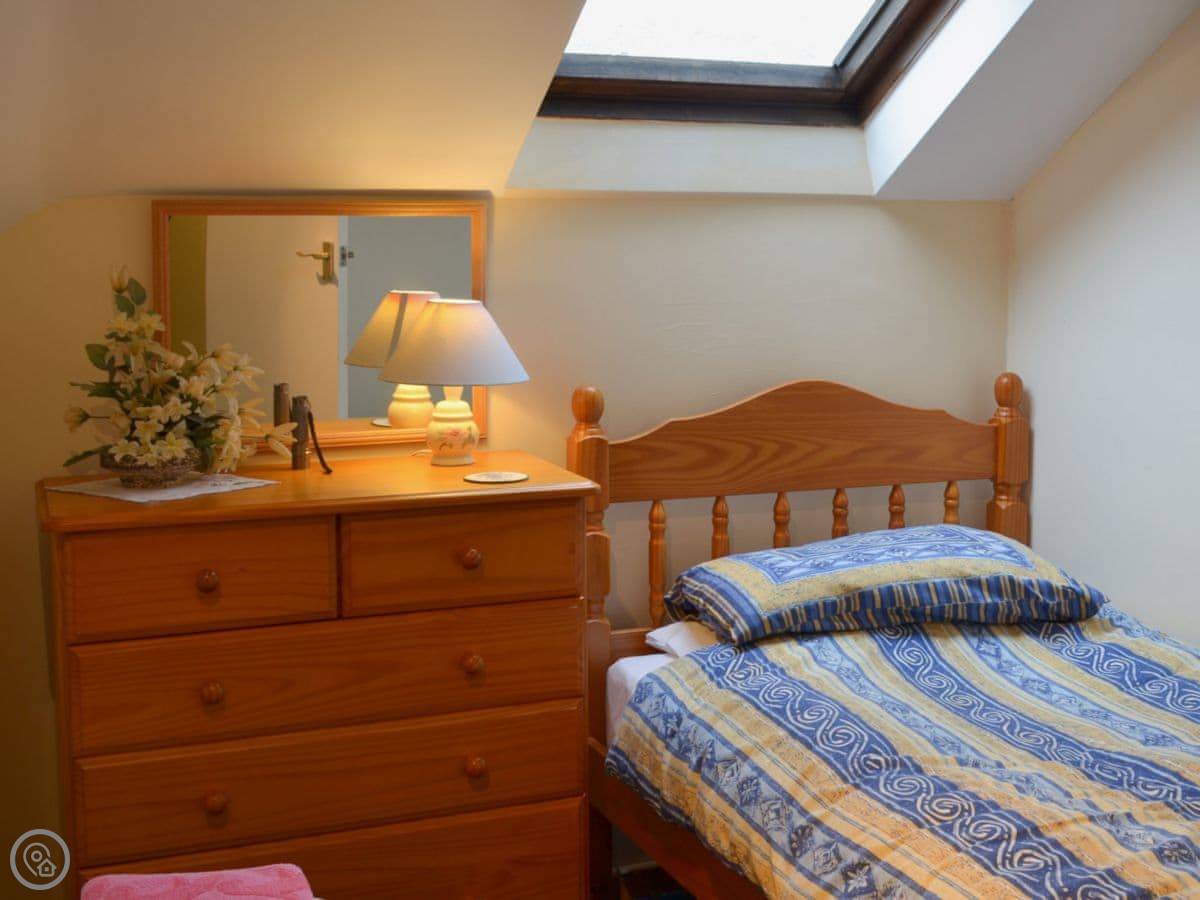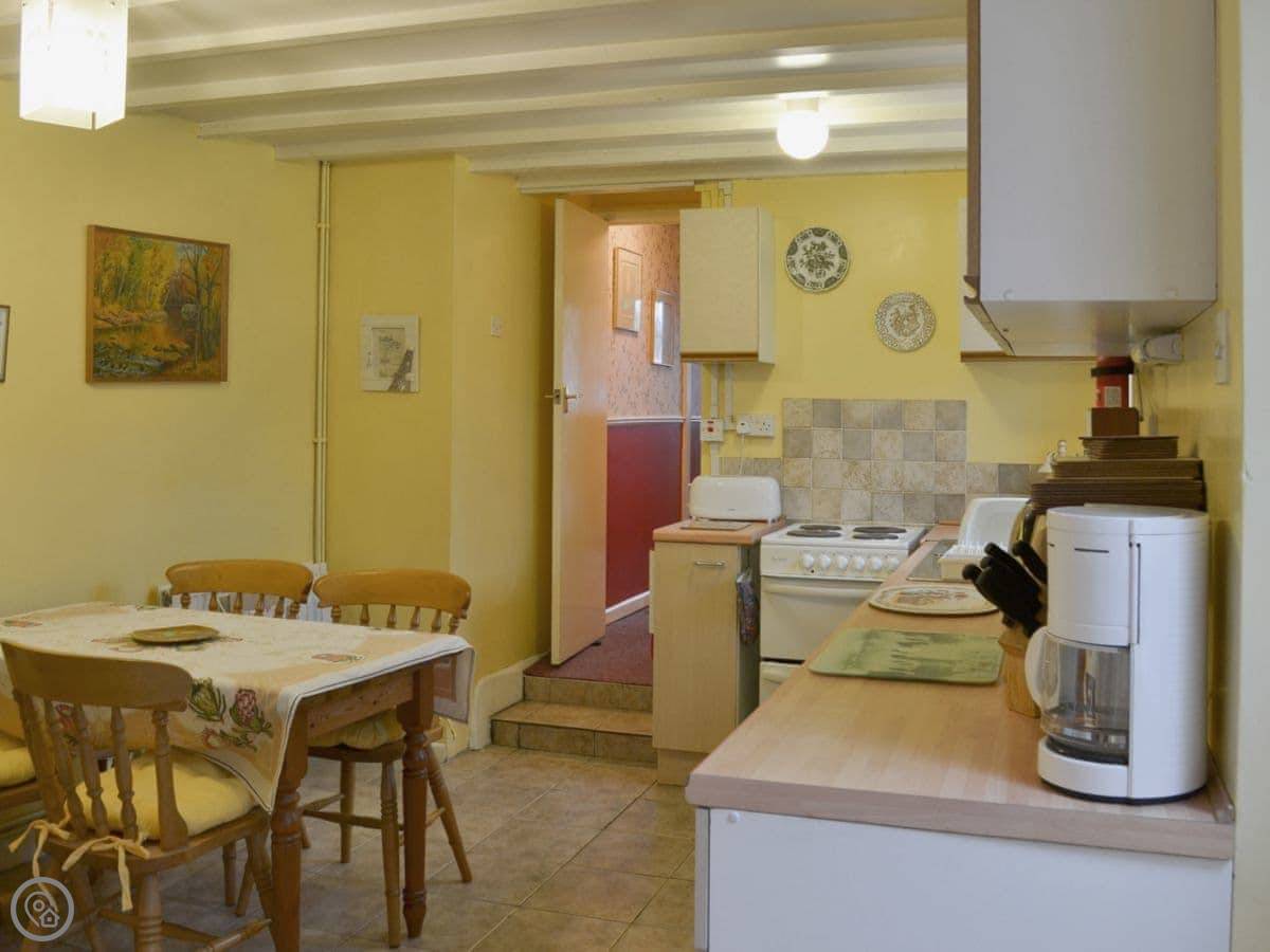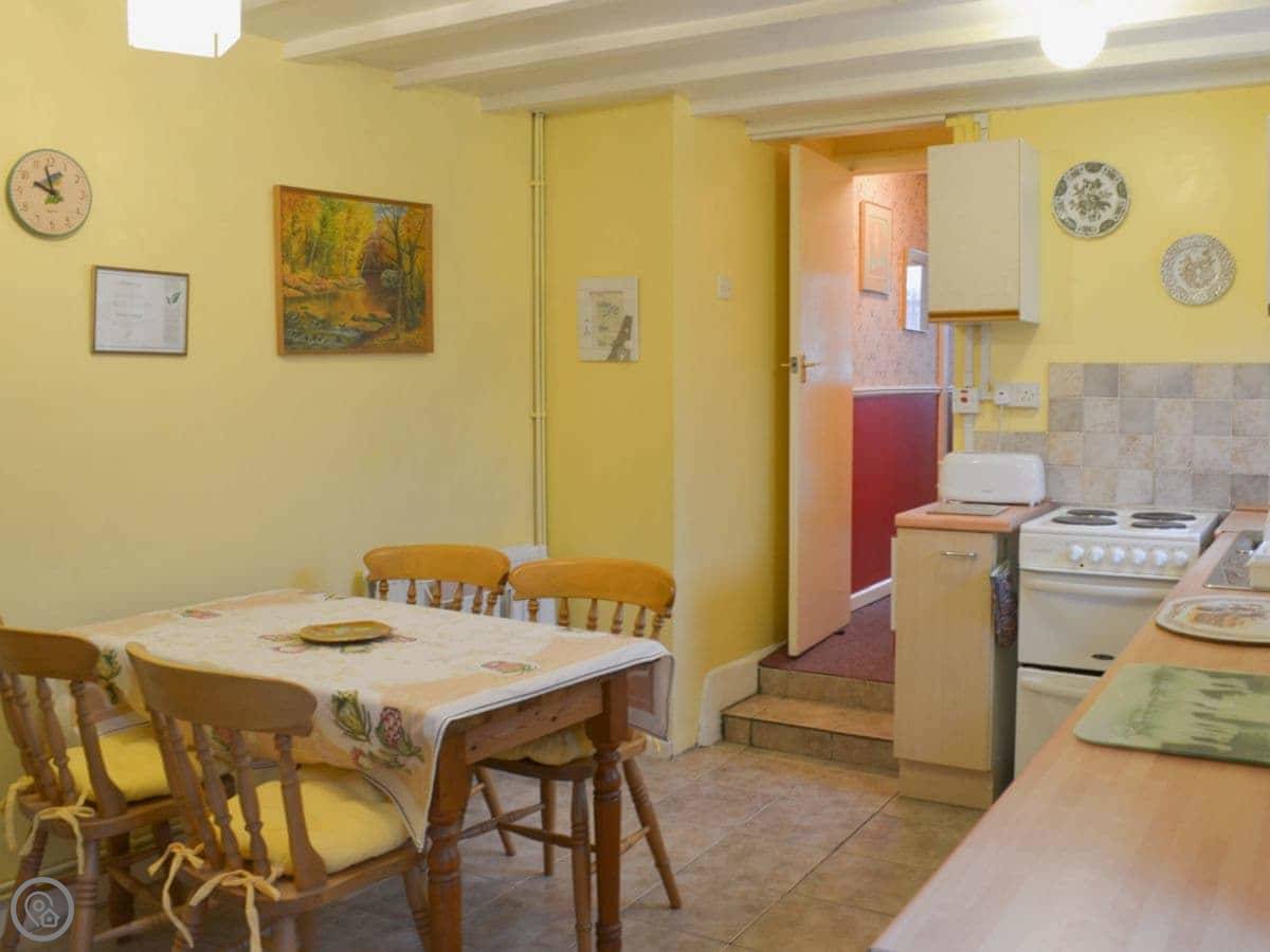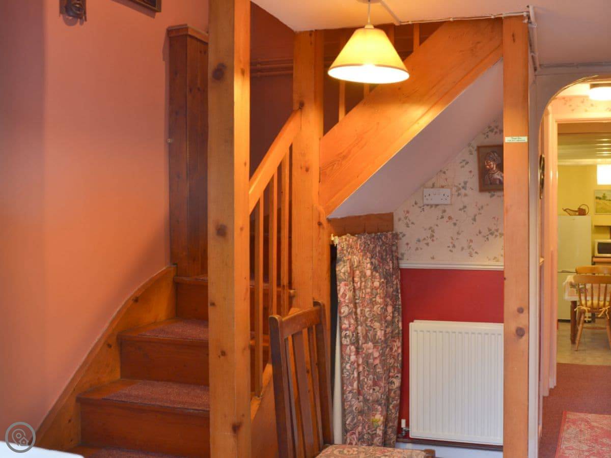 It sleeps four. There are three bedrooms and two bathrooms, so it's quite handy for that. The rating is 4 Star, which covers things like the dishwasher and proper heating. The stairs inside are a particular thing to mention. They're a proper cottage spiral staircase, quite steep and open. You need to watch your step.