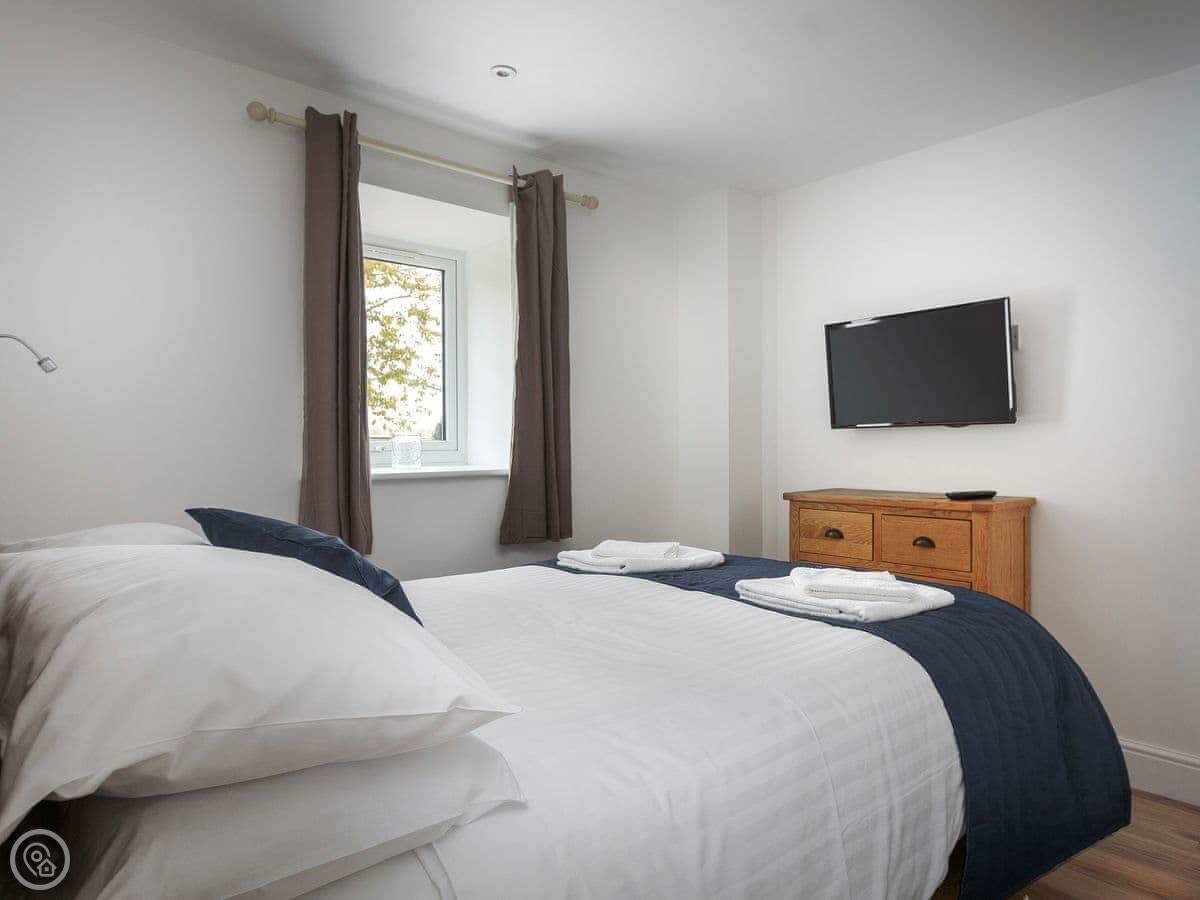 Inside, it's got what you'd expect. Wifi, TV, dishwasher, washing machine. Bedding and towels are included. There's a cot and a stairgate if you need them. You can bring two dogs.