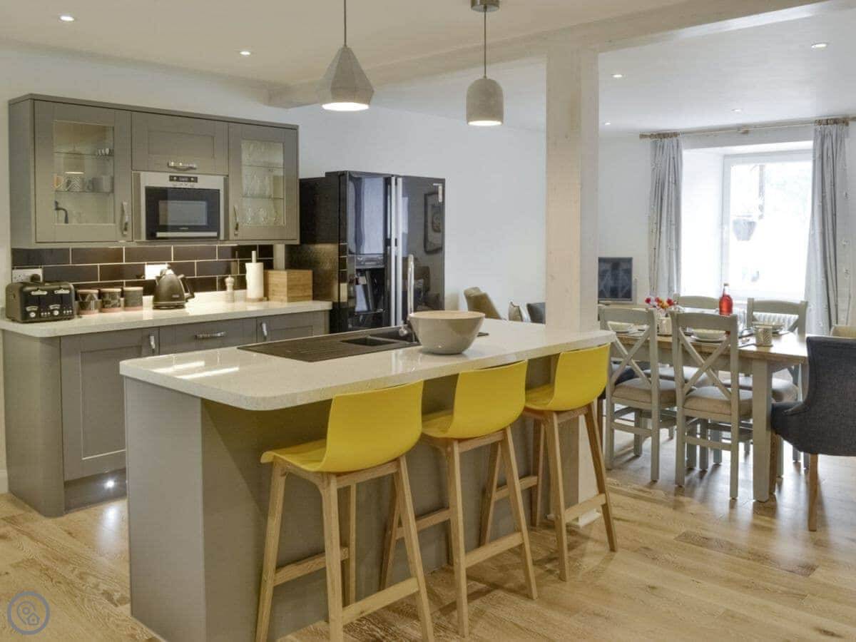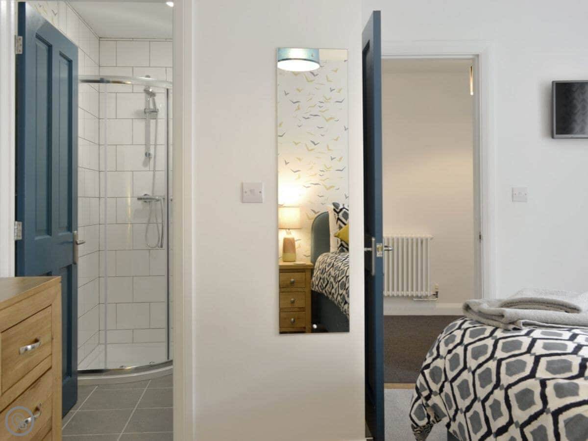 It sleeps six. Three bedrooms, four bathrooms. Two of the bedrooms have their own shower rooms. It's a 5 Star place, which means it's well finished and comfortable. The stairs are fine, but it's over three floors so there are a few of them.