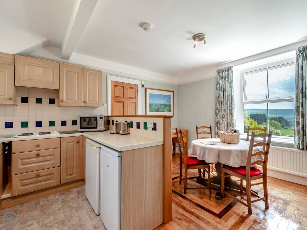 You can walk straight from the door onto the moor. The coast is about two miles down the hill at Sandsend. Whitby is four miles along the coast. It's a proper fishing port with the Abbey and all that. The beach at Sandsend is long and sandy when the tide's out.