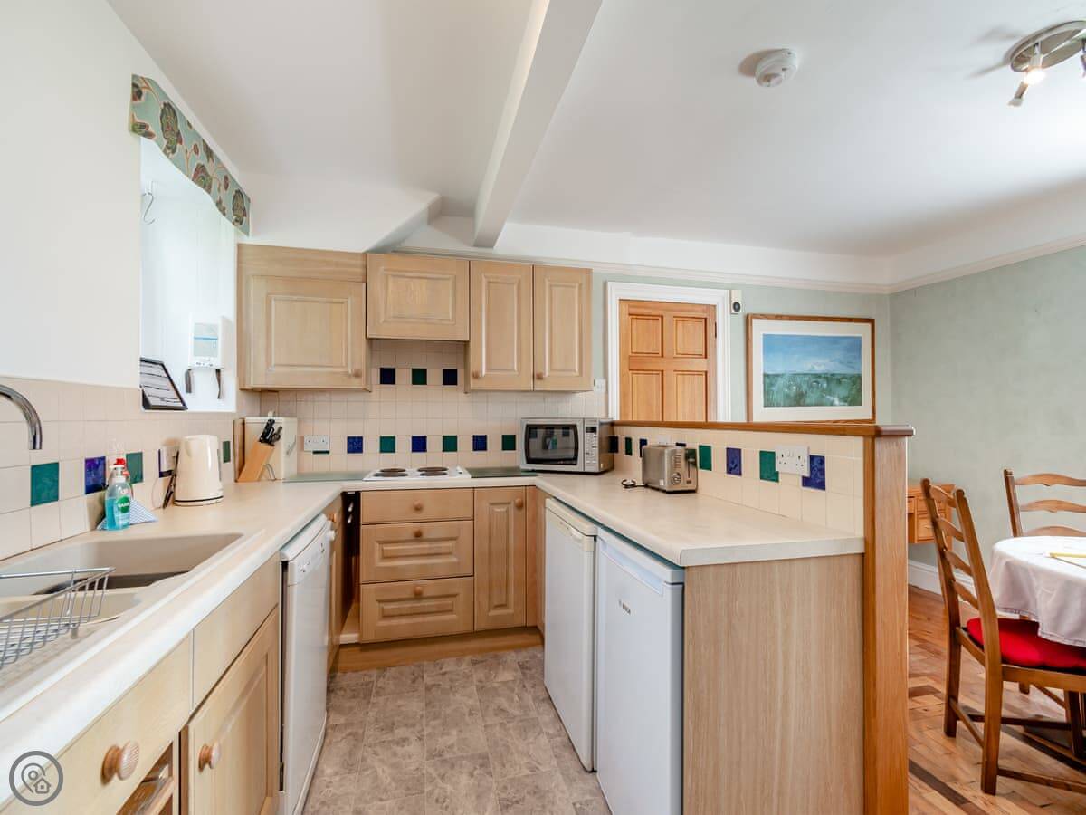 It says it's got a romantic setting, which I suppose means it's quiet and on its own. You can bring one dog. There's parking for a car. Everything like bedding and towels is provided, and there's a washing machine and a dishwasher. Also a highchair and a cot if you need them.