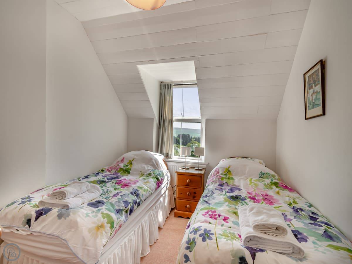 It sleeps four. Two bedrooms, one bathroom. It's got a 4 Star rating. It's comfortable and has a wood burner for evenings. The main thing is the view, it's really good from up there.