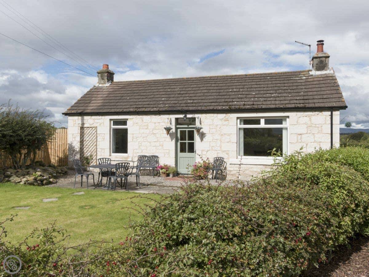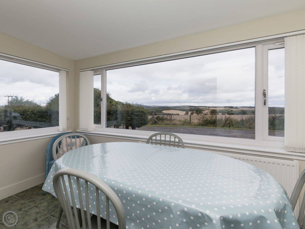 The Den is a detached cottage on our farm. It's down a farm track, so it's quiet. You get the garden to yourself, it's enclosed. The views are over fields towards the hills.