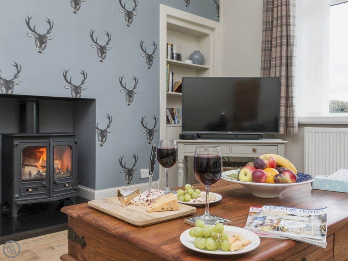 It sleeps four. Two bedrooms, one bathroom. All on one level, so no stairs. It's a 4 Star place, so it's well looked after. There's underfloor heating and a wood burner if you want a fire.