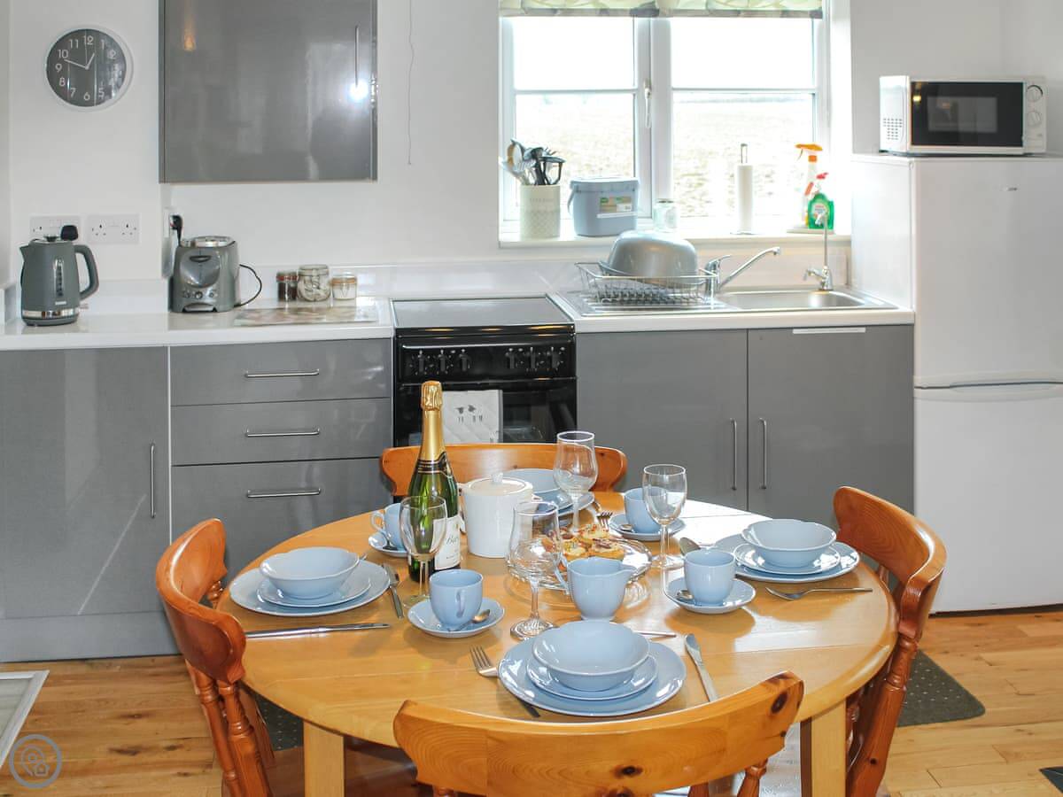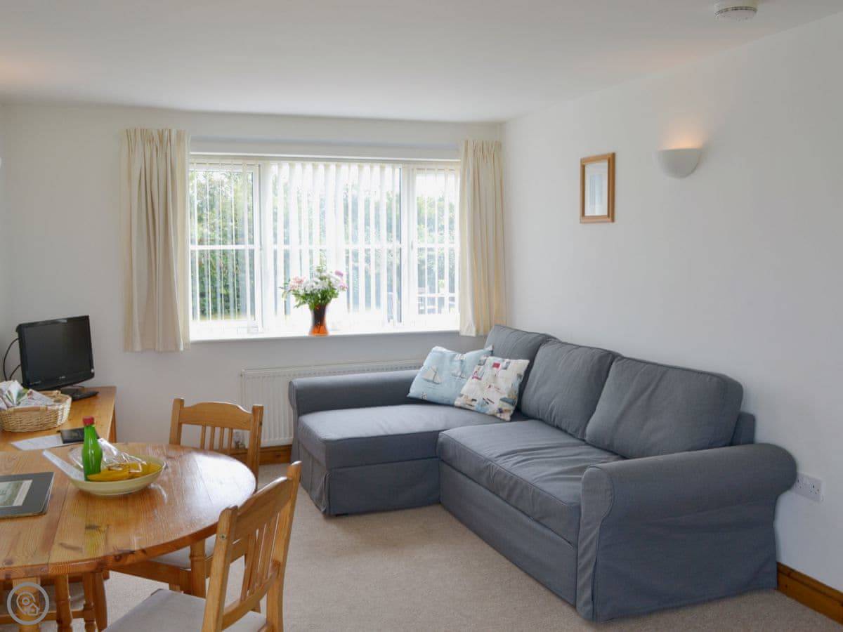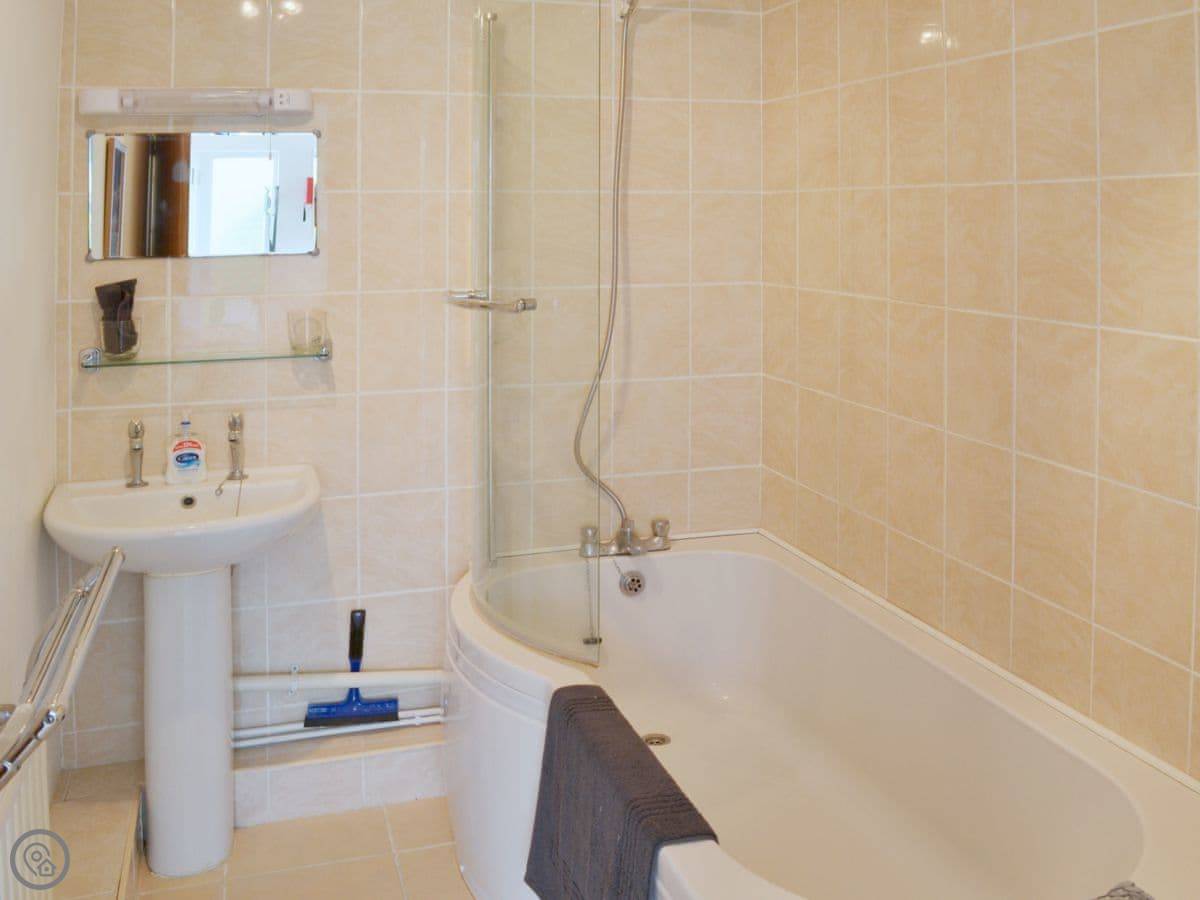 It's an apartment, so it's all on one level. Open plan living, kitchen, and dining area. One bedroom with a double and bunk beds, so it sleeps four, but it's cosier than a house. One bathroom with a shower. It's a 4 Star, so it's comfortable and everything works. The WiFi is okay for browsing.