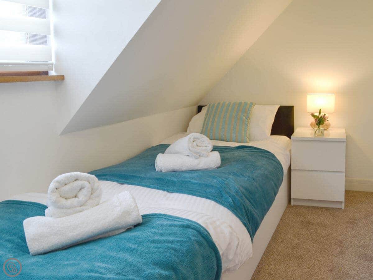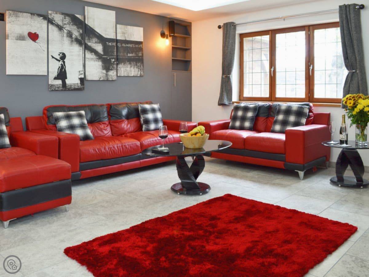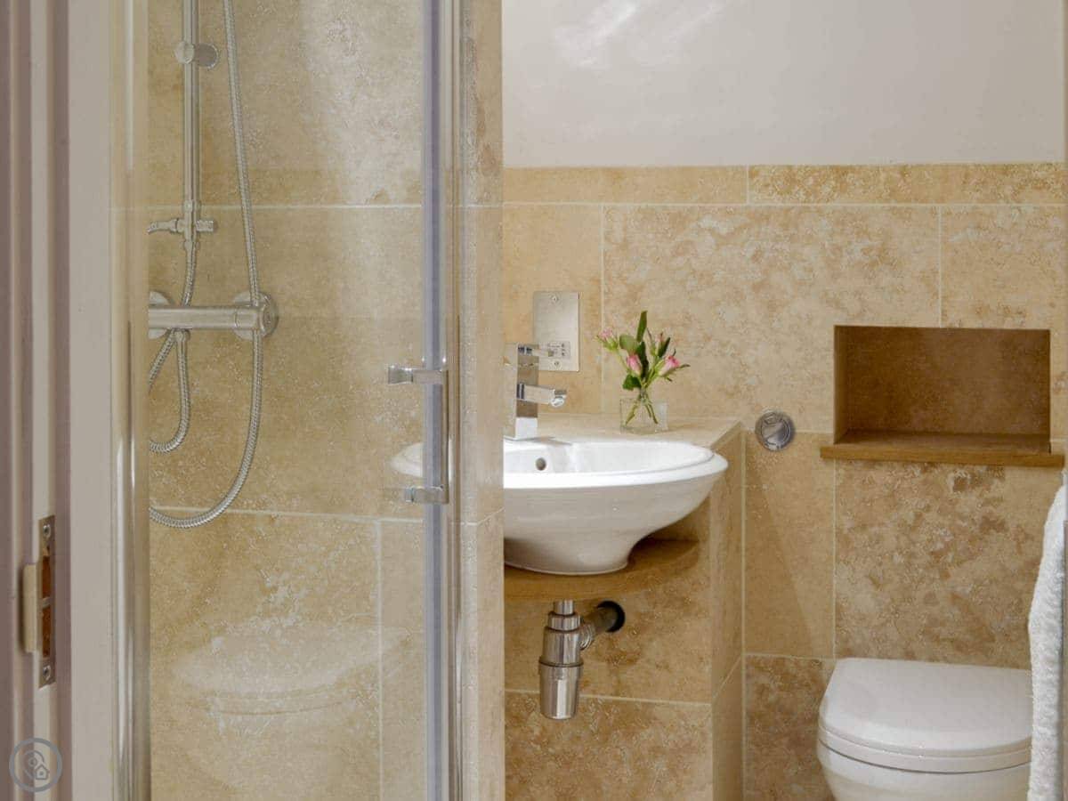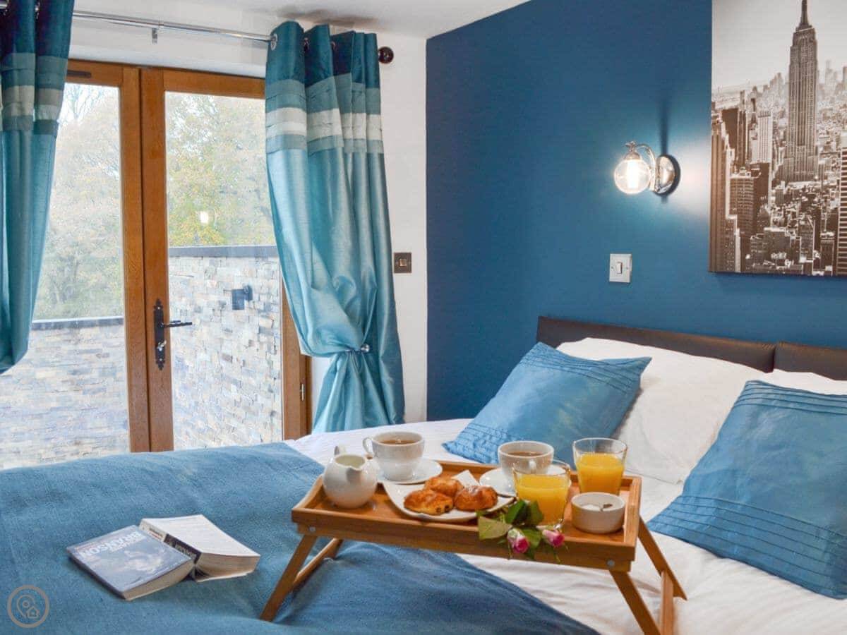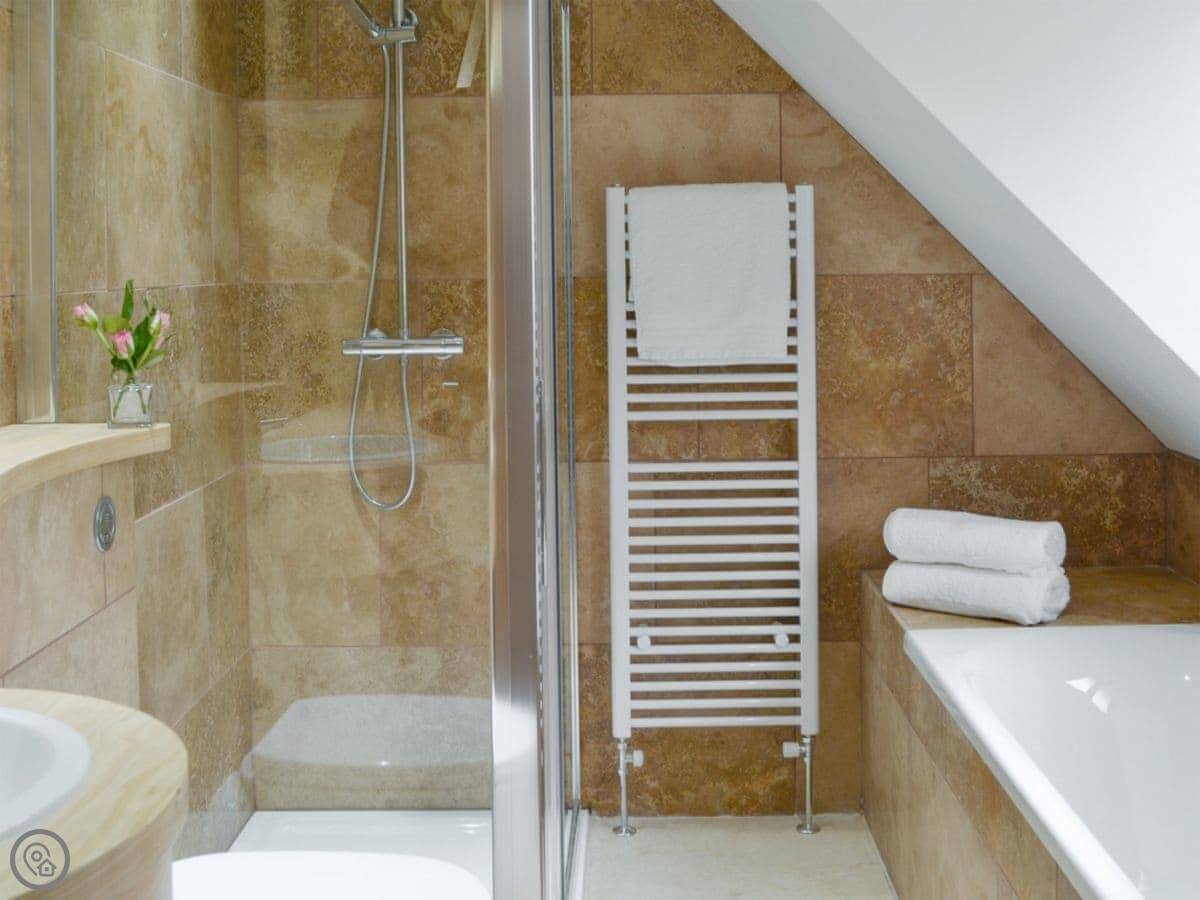 It sleeps nine. Five bedrooms and three bathrooms. It's got a 5 Star rating. That means it's well-equipped and comfortable. There's a cinema room with a wood burner for evenings in.