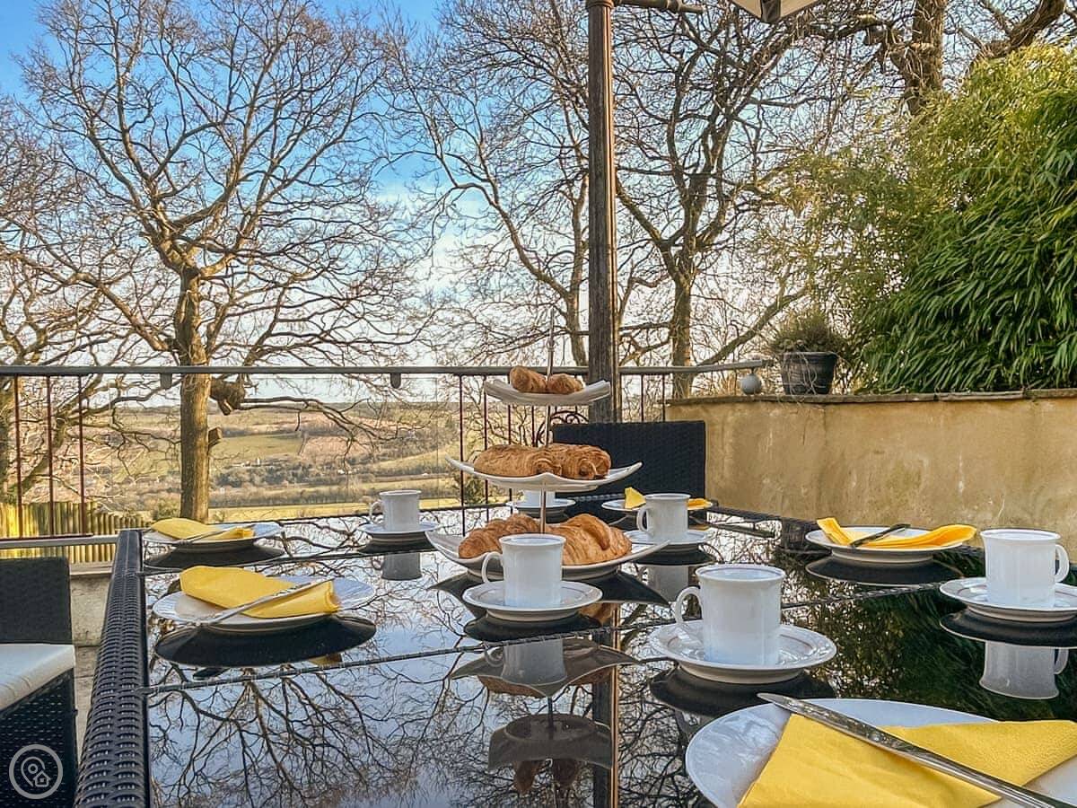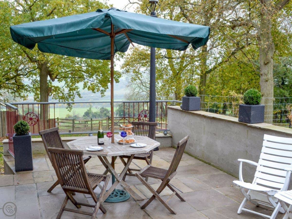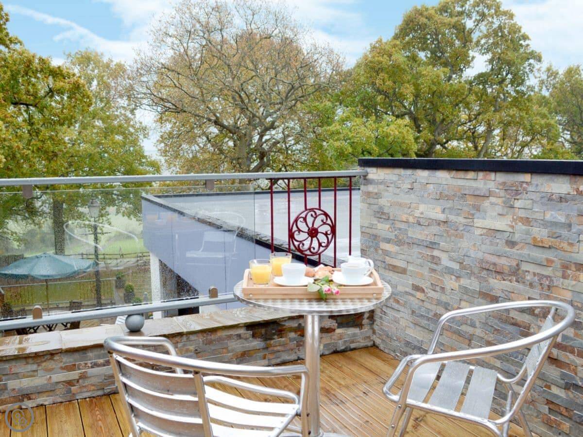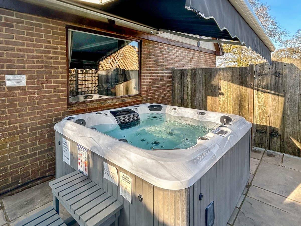 Outside, there's a terrace with a hot tub. Steps lead down from it into a paddock, which is good for a picnic. The paddock backs onto woodland. There's also a ping pong table under cover.