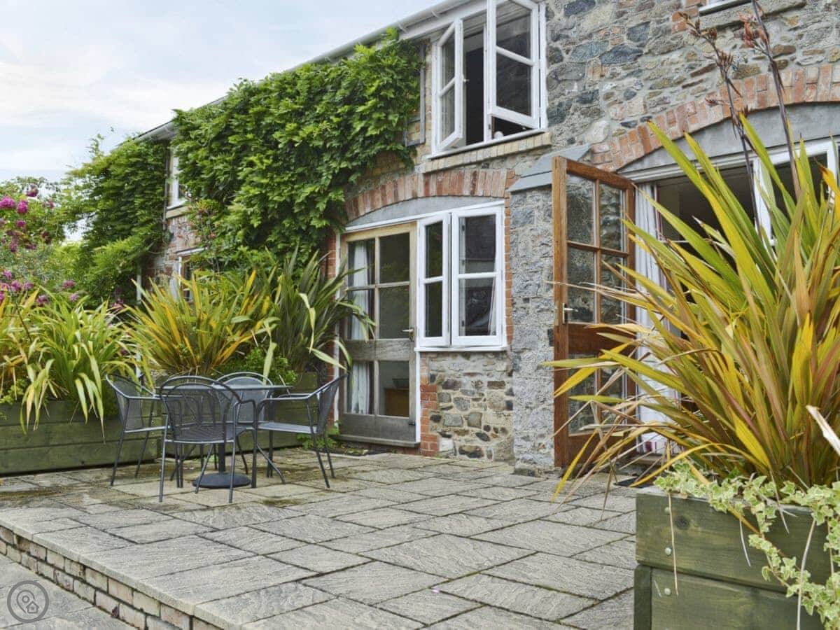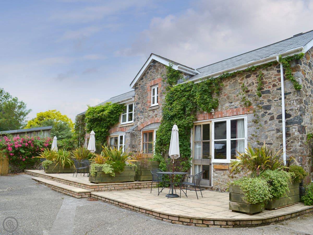 This is Wisteria in Bovey Tracey. It's one of three cottages here, all in a row around a courtyard. We live on site too, along with a smallholding and a few caravans.