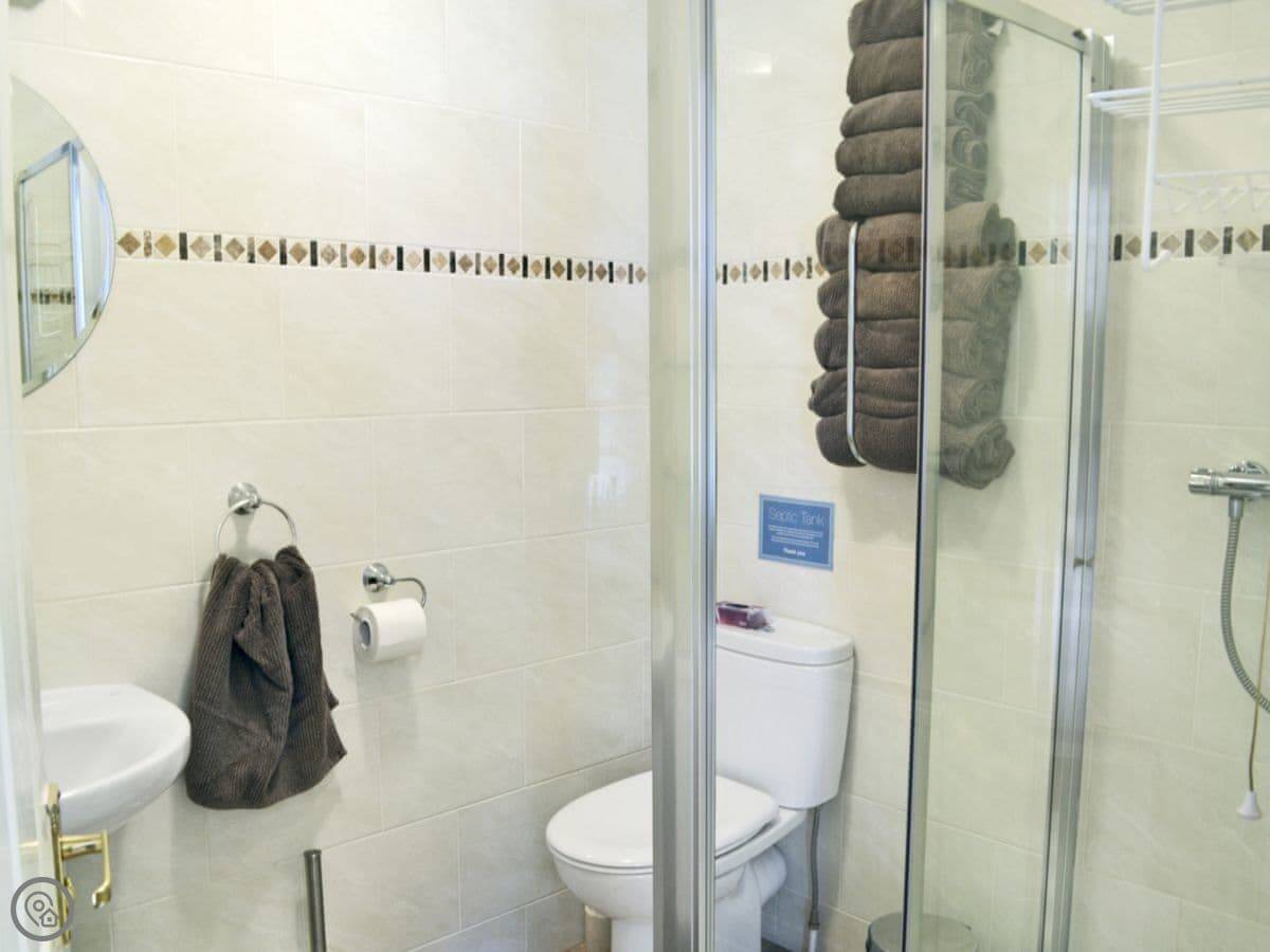 Inside, it's open plan. There's a TV, WiFi, a dishwasher and a washing machine. Bedding and towels are included. You can park right outside and there's an electric vehicle charger if you need it. We allow one well-behaved dog. There's a cot and a highchair if required.