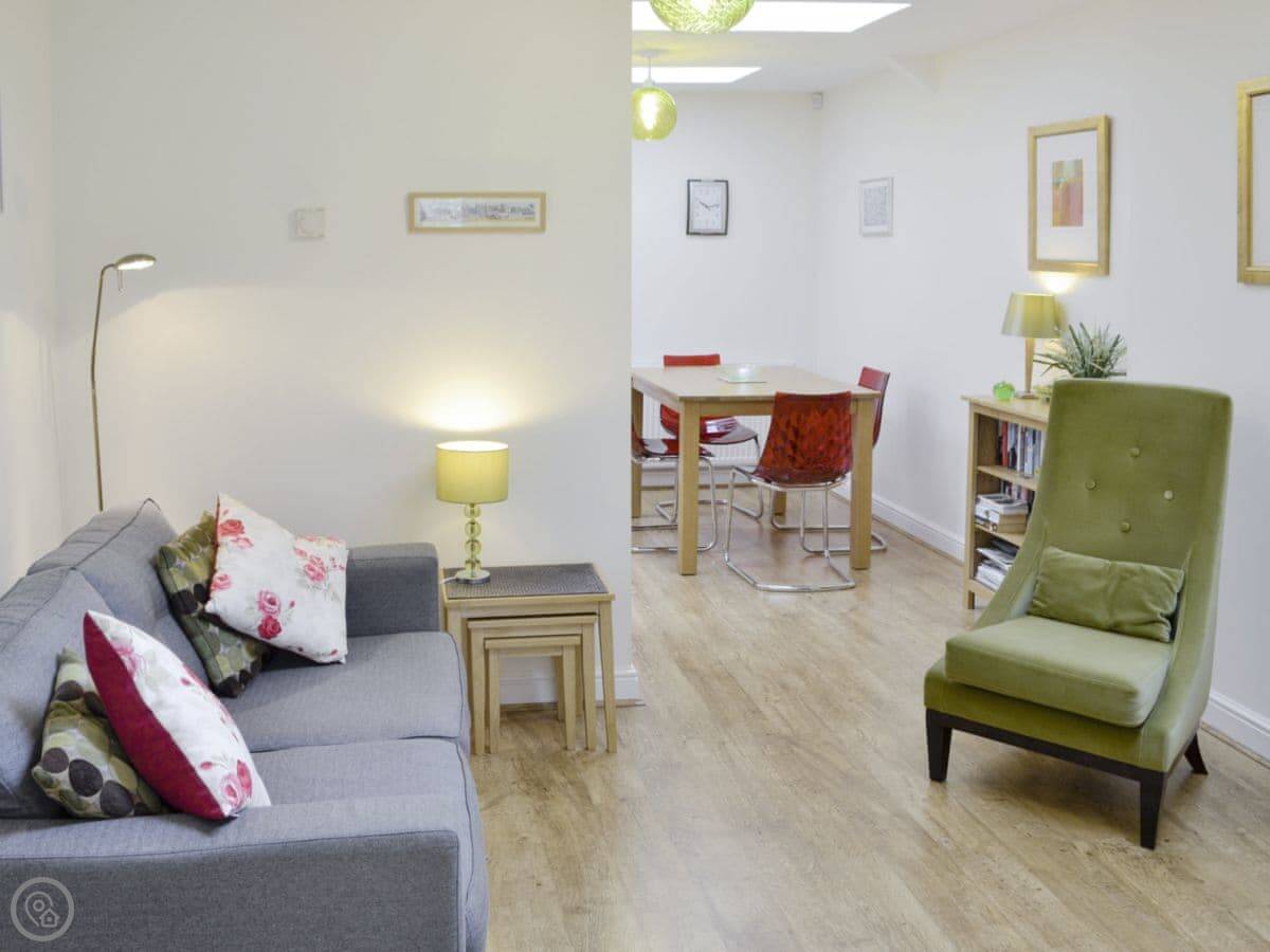 You've got a small enclosed garden out the back. It's private. There's a washing machine, a TV, and WiFi. Bedding and towels are here for you. You can park right outside.