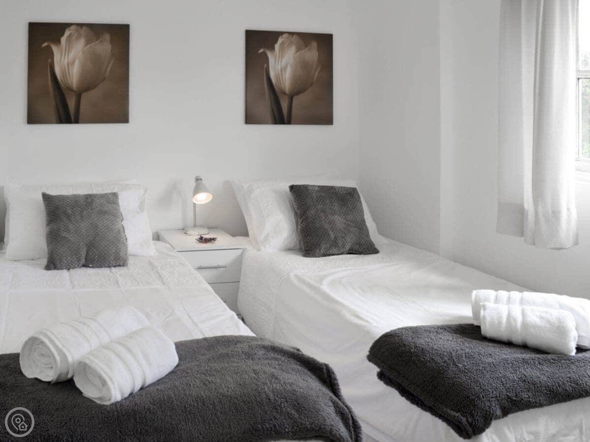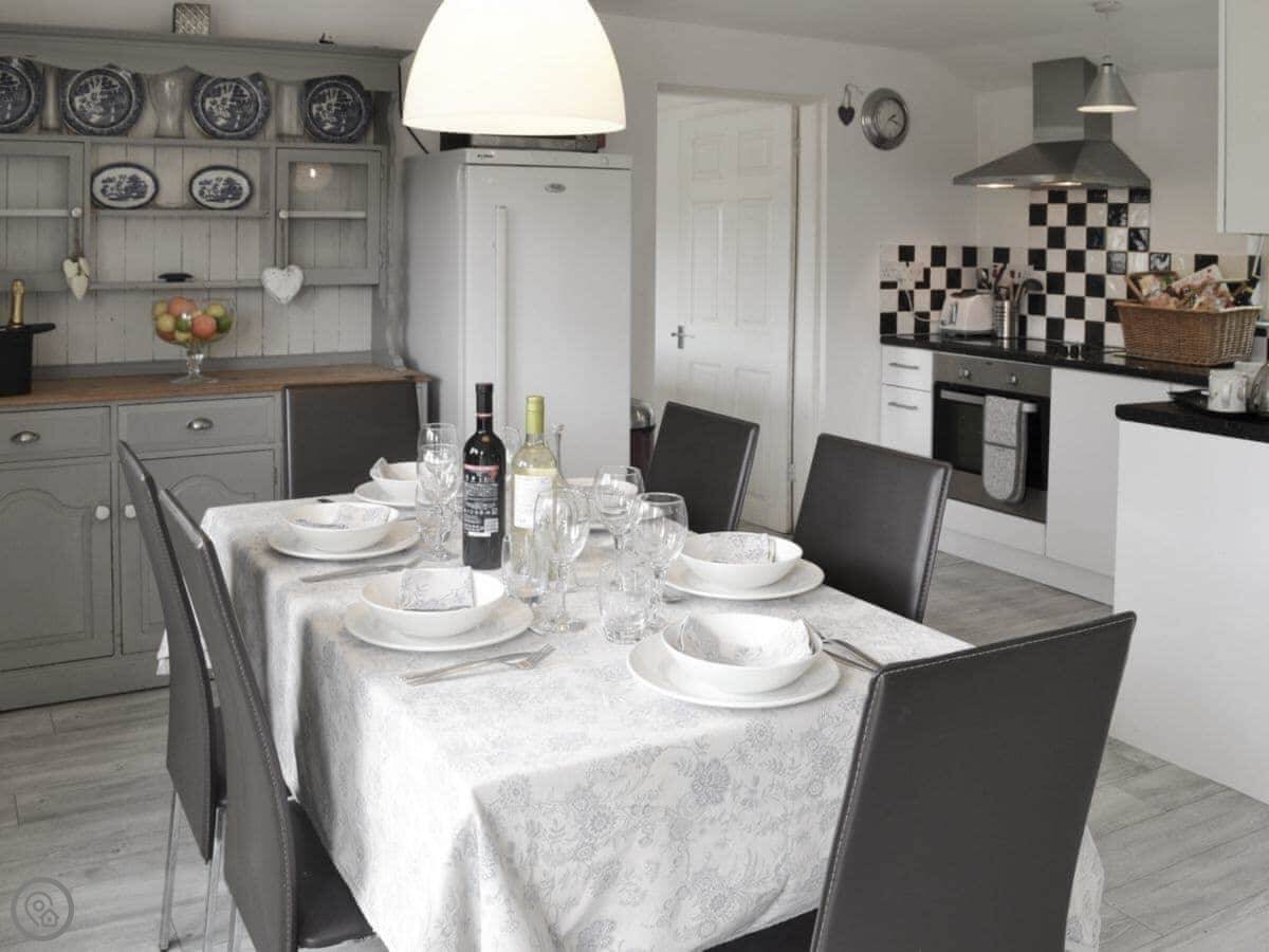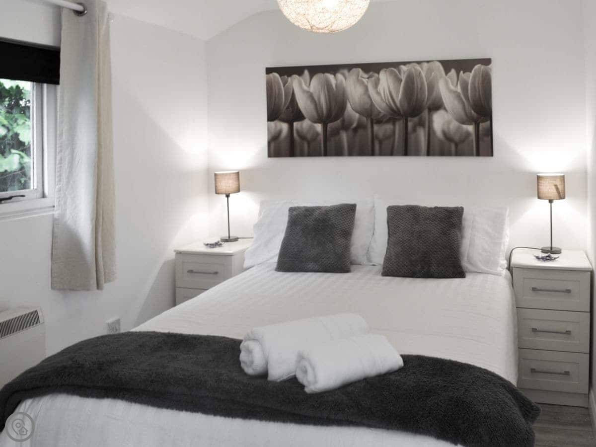 It sleeps six people. Three bedrooms, two bathrooms. Everything's on the ground floor. It's got a 3 Star rating, so it's comfortable and clean. It's not a show home, it's a place to stay.