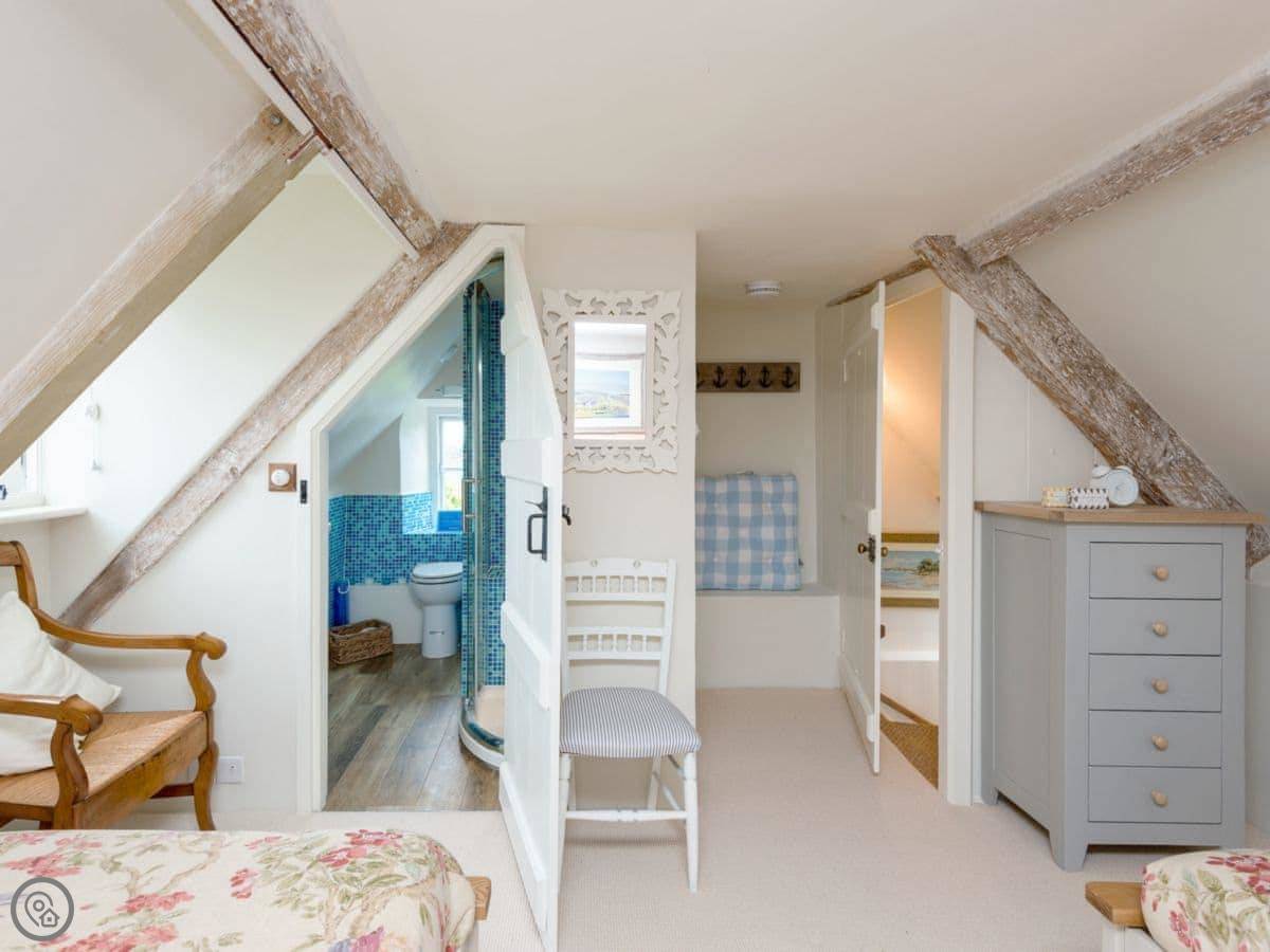 Sweet Pea Cottage is a pretty, comfortable and cosy home, making it an ideal getaway for couples or small families, with an extensive shared lawned garden, which offers distant views of grazing cattle. The cottage has been tastefully furnished and co-ordinated with soft colours, and has an open plan living space with a feature inglenook fireplace and wood burner. There are two sumptuous bedrooms which are en-suite and enjoy splendid views over the surrounding countryside. The owner provides Cath Kidston and The White Company bed linen and towels.