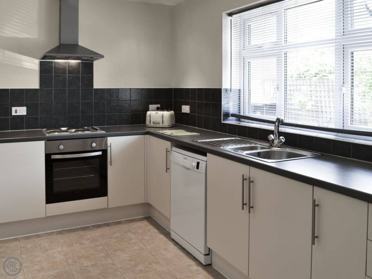 Inside, it's got everything you'd expect: a washing machine, a dishwasher, WiFi, TV, and parking. Bedding and towels are included. No pets, sorry.