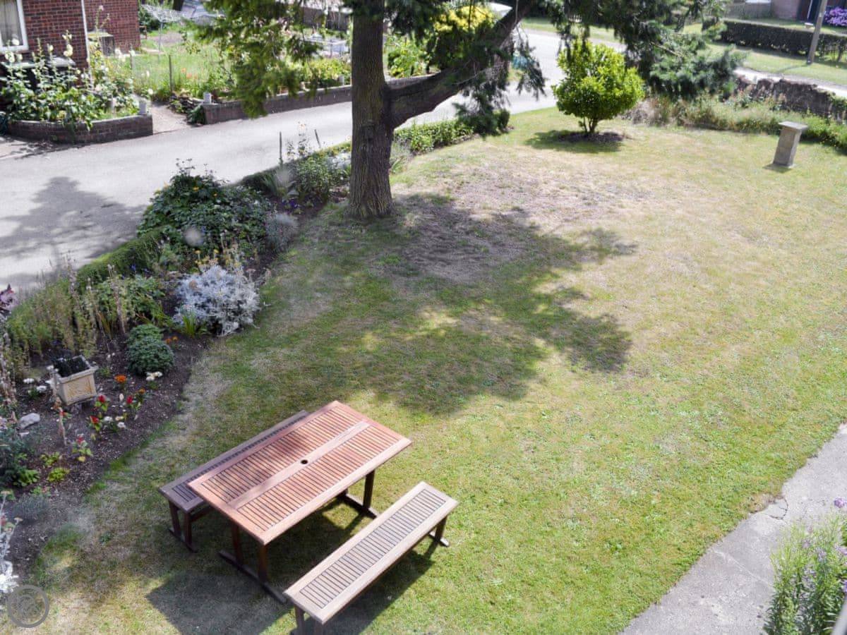 Outside, you have your own private seating area at the front. There's a shared lawn too.
