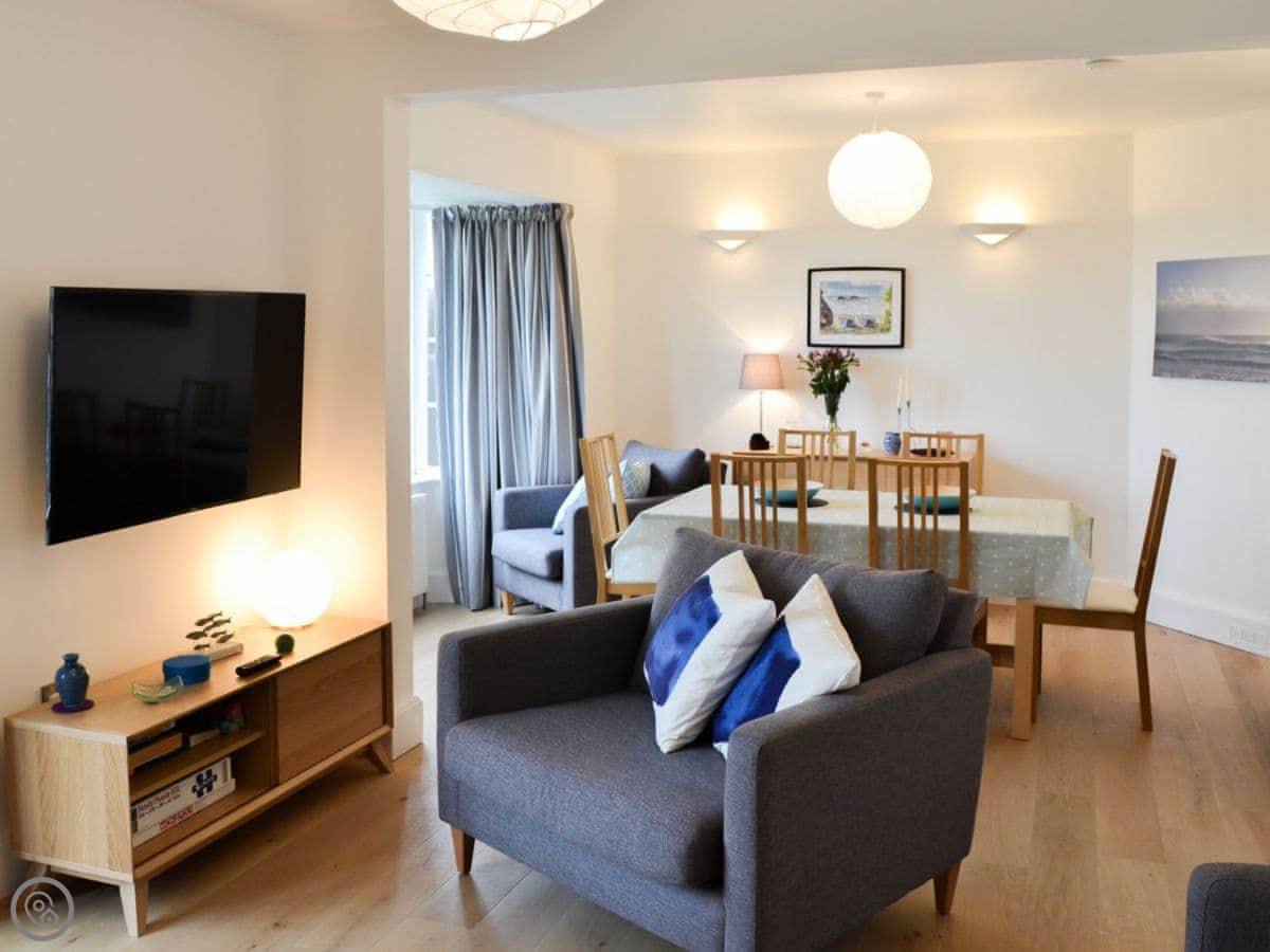 The house has been lovingly restored by its owners and provides a comfortable, family holiday home. The flexible accommodation will appeal to families, friends or couples all year round. There is a spacious, open plan living/dining room with sea views, solid wooden floors, a welcoming wood burner and full central heating to ensure guests enjoy a cosy stay, whatever the season.